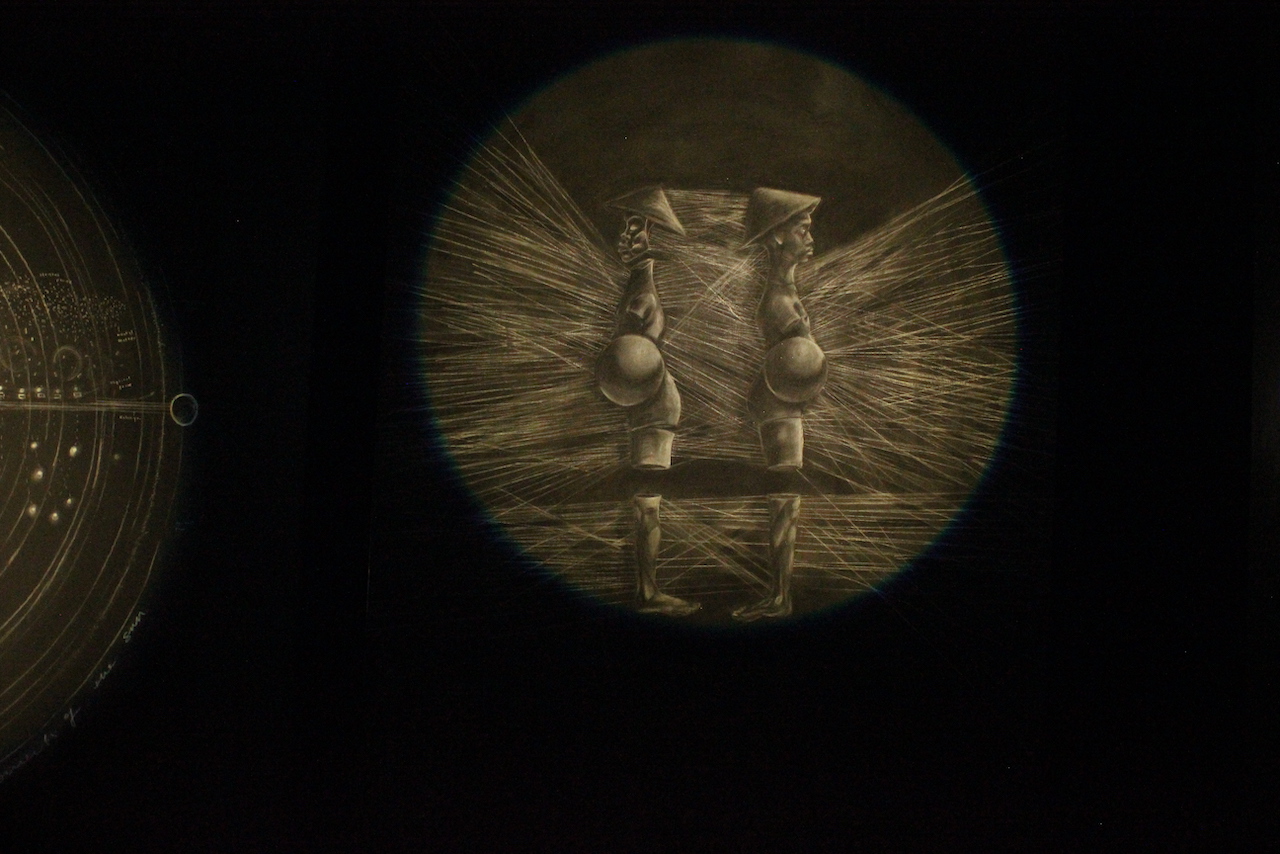 Rooted in my Irish and Bahamian heritage—two post-colonial regions—my artistic practice has been shaped by observation and critical analysis of how colonial legacies shape contemporary realities. My work interrogates themes of race, identity, and spirituality, with a current emphasis on post-colonialism and its implications for the human condition in modern society. I consider spirituality a potent means for both socio-cultural resistance and the preservation of cultural identity. My visual language embraces allegory through various mediums, encompassing installation art, photography, sculpture, and paint. My most recent body of work, ‘Lost and Giddy,’ is a multimedia performance-based installation exploring the deep implications of colonialism and the ensuing loss of identity. I employ blackboards as pedagogical instruments to impart indigenous African and Caribbean philosophical and spiritual teachings, subverting their traditional institutional function by elevating deeply spiritual cultures, historically dismissed as primitive. The installation integrates sculptural representations evoking African traditional sculpture, emphasising the historical appropriation of these sacred objects within institutional settings, displaced from their original contexts. However, my sculptures portray Douens—drawn from Caribbean folklore—these lost and giddy figures, portrayed with backwards feet and disjointed bodies, epitomise the enduring spirit of loss inflicted by colonialism.