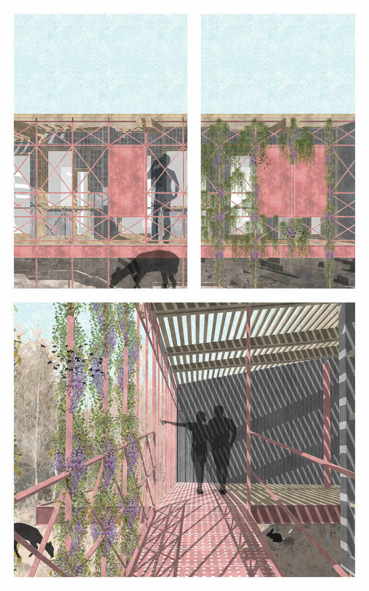 My thesis, 'A Symbiotic Architecture', is concerned with the development of a methodology of building which uses the ecologies and landscape typology of a given site as a generator for architectural form, with the aim of representing a mature relationship between the built environment and its landscape context. Laragh, Co. Wicklow, provided a specific site on which the thesis was tested.