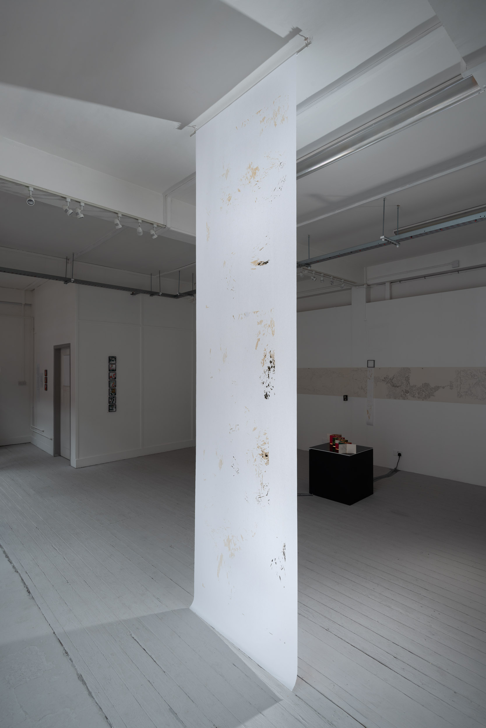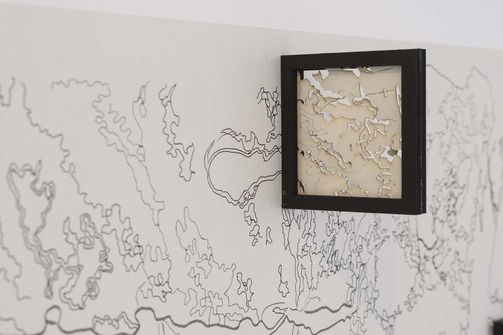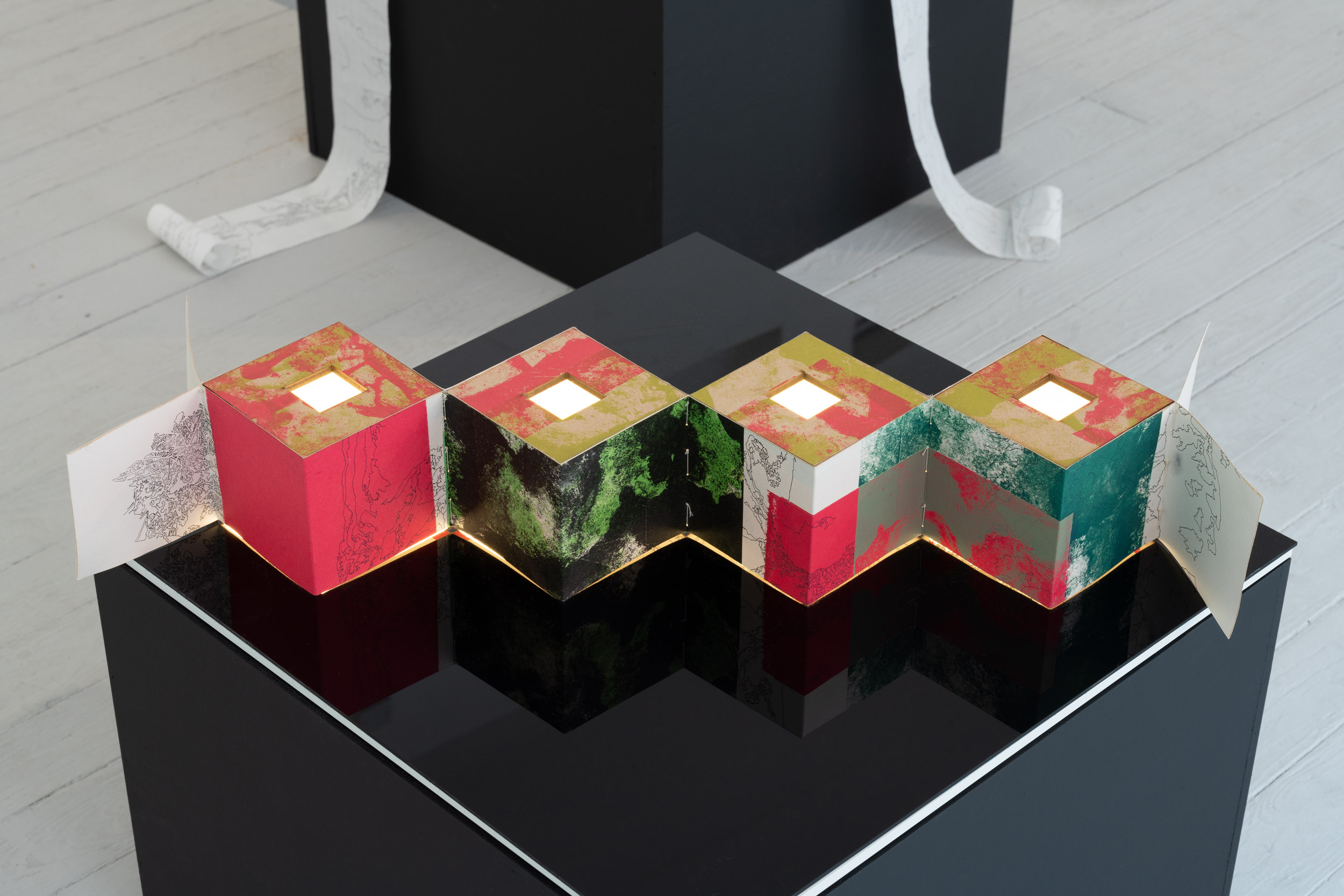 I aspire to interpret marks from nature, formed , created and built up over time, mimicking the balance between nature and time. Erosion marks on the rock’s surface and within, inform my drawings I create, by balancing marks made by hand and by laser. Hand drawn marks etched by a laser marking system, on shoji paper, much like nature’s marks on the rock’s surface. Through the mediums of photography, drawing and screen-print, I aim to map time. Each rock has a story to tell. To suggest the layers of time trapped within rocks, I examine the layering of imagery in kiln cast glass and explore colour, opacity, pattern and transparency of image.