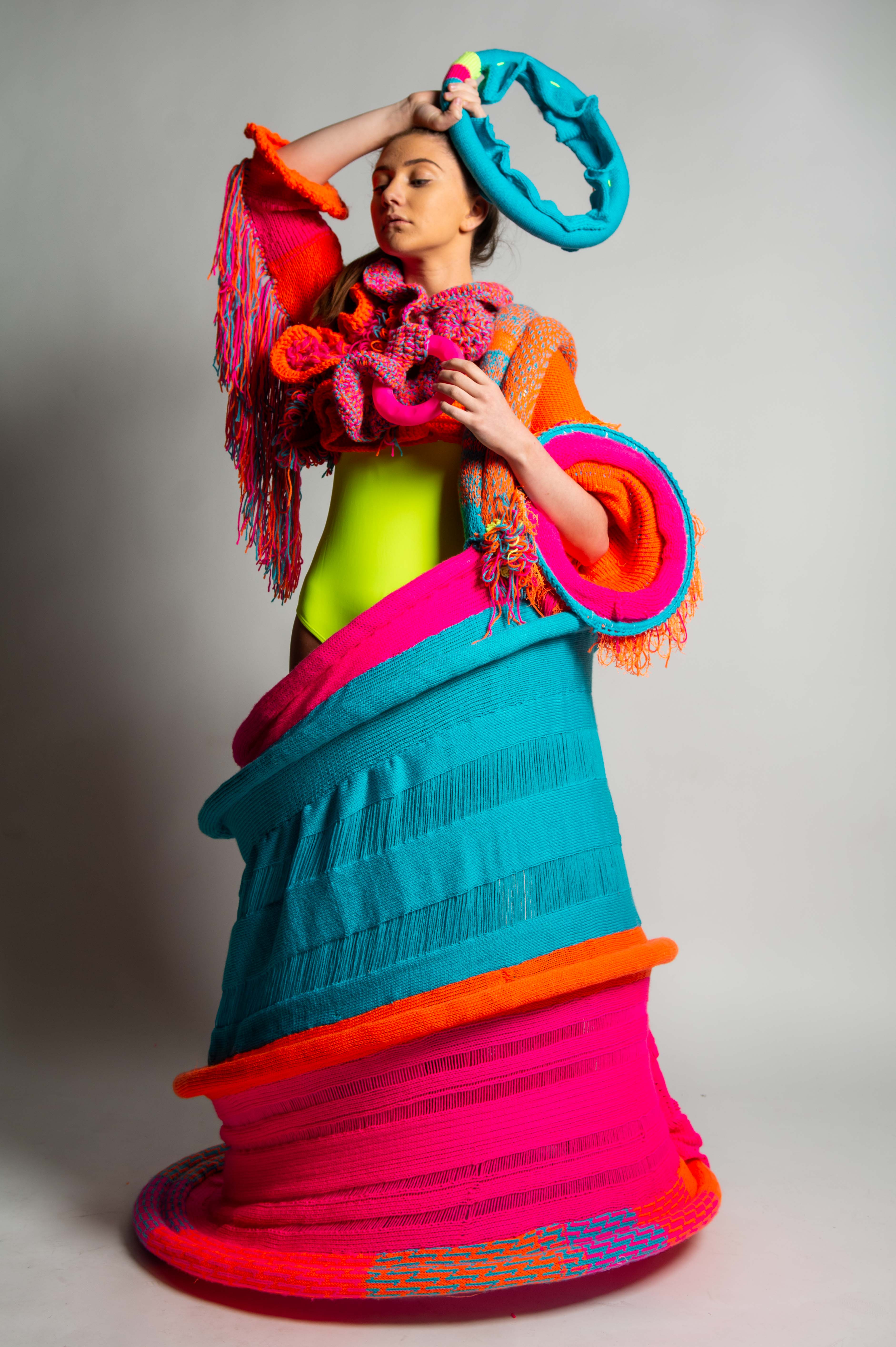I am a maker, a facilitator and an educator. My love of making has found confidence in my ability to create surfaces and structures through textiles & knit. This passion uses these surface constructions for the body. My work responds to Buddhist believes, but also responds to the hedonism world of festivals, music & performance by representing connections, memories and the celebration of life.