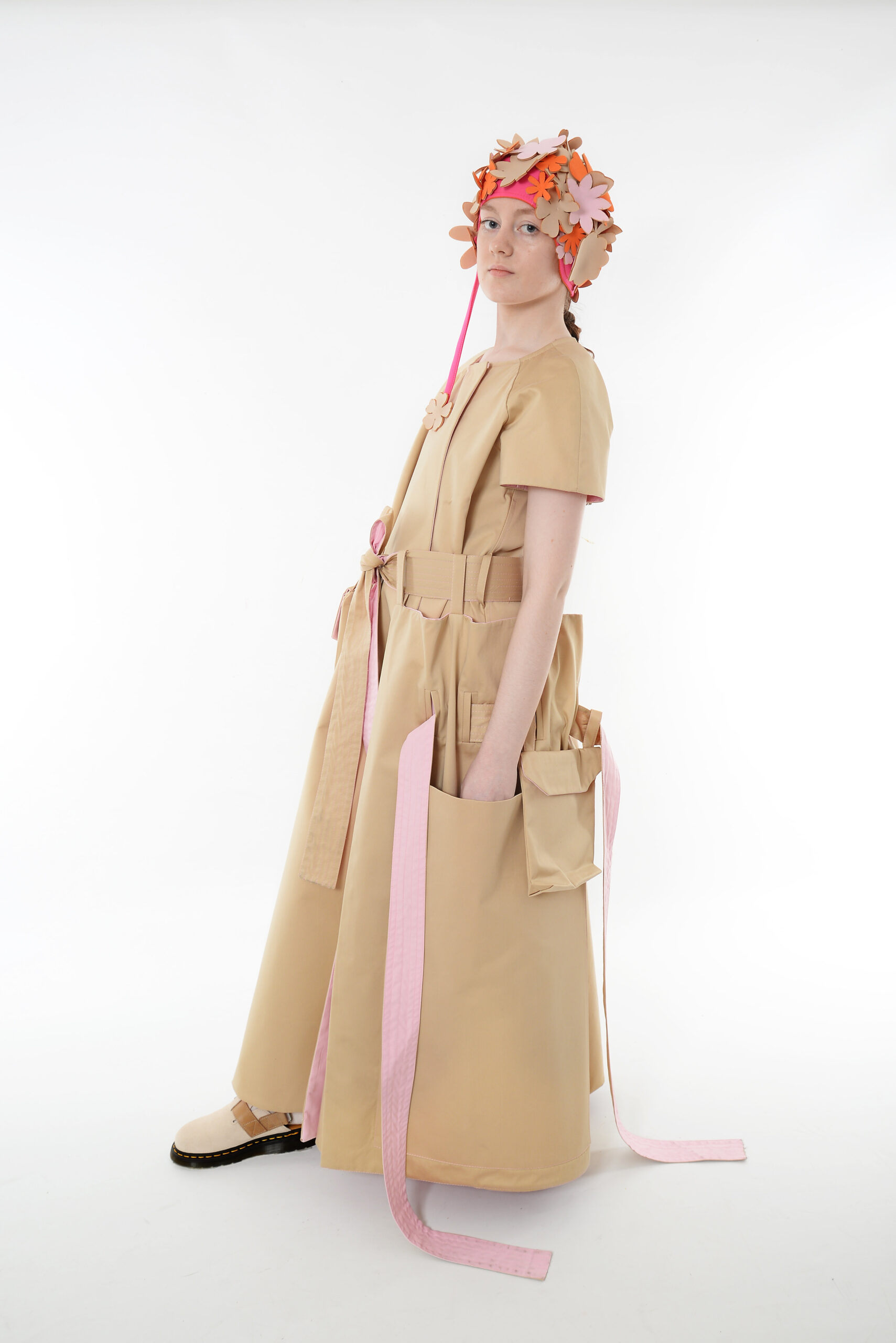 Battle of Flowers ‘ Battle of Flowers’ is a womenswear collection that combines sophistication and versatility. I took inspiration from my glamorous grandparents. Their honeymoon was in Jersey during ‘The Battle of Flowers’ festival in 1960. My research focuses on my grandfather’s business in fine leather glove manufacturing. I incorporated details from the gloves into my patterns, making techniques, forms and structure.Removable pockets is one of the key features in the collection. This allows customers to customise their clothing to suit their needs and preferences, making the garments functional and truly versatile. Minimal aesthetic and clean lines provides the customer with elegant clothing that can be worn in a variety of ways.