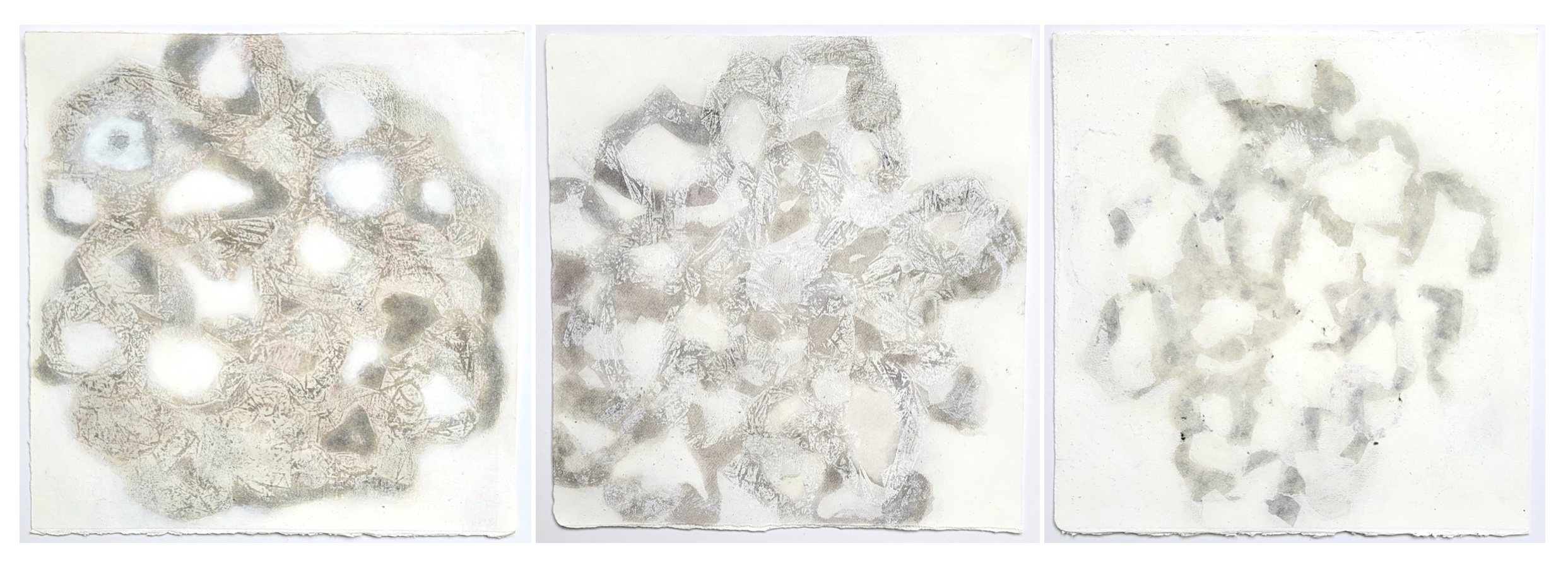 Formally trained as a biologist, a primary theme that informs my practice is the intersection of the visual arts and science. These disciplines are often perceived as being distinct from each other, but they share many commonalities including that they are systems that produce knowledge, in addition to being avenues for investigation and communication. My current body of work entitled Ōra is informed by research into the growing influence of neuroscience on contemporary life, including our understanding of the aesthetic experience. The allure of neuroculture can be the promise of a unified theory of knowledge, bridging the divide between the sciences and humanities by encompassing fields of study conventionally the focus of philosophical contemplation such as religion and creativity. I have chosen to work with media that visibly react to environmental conditions which echoes how neural networks, and thoughts are in a continuous state of flux in response to our surroundings. Copper, a primordial metal, is essential for neurotransmission and the electrical framework that sustains life. The opaque materiality of soap and its changing translucency mirrors that although we are in an age of technological acceleration with exponential growth of data, a complete understanding of neurocognitive mechanisms involved in consciousness still remains beyond our comprehension. It is this elusive quality that I seek to capture in my work, while also allowing adequate space for individual interpretation.