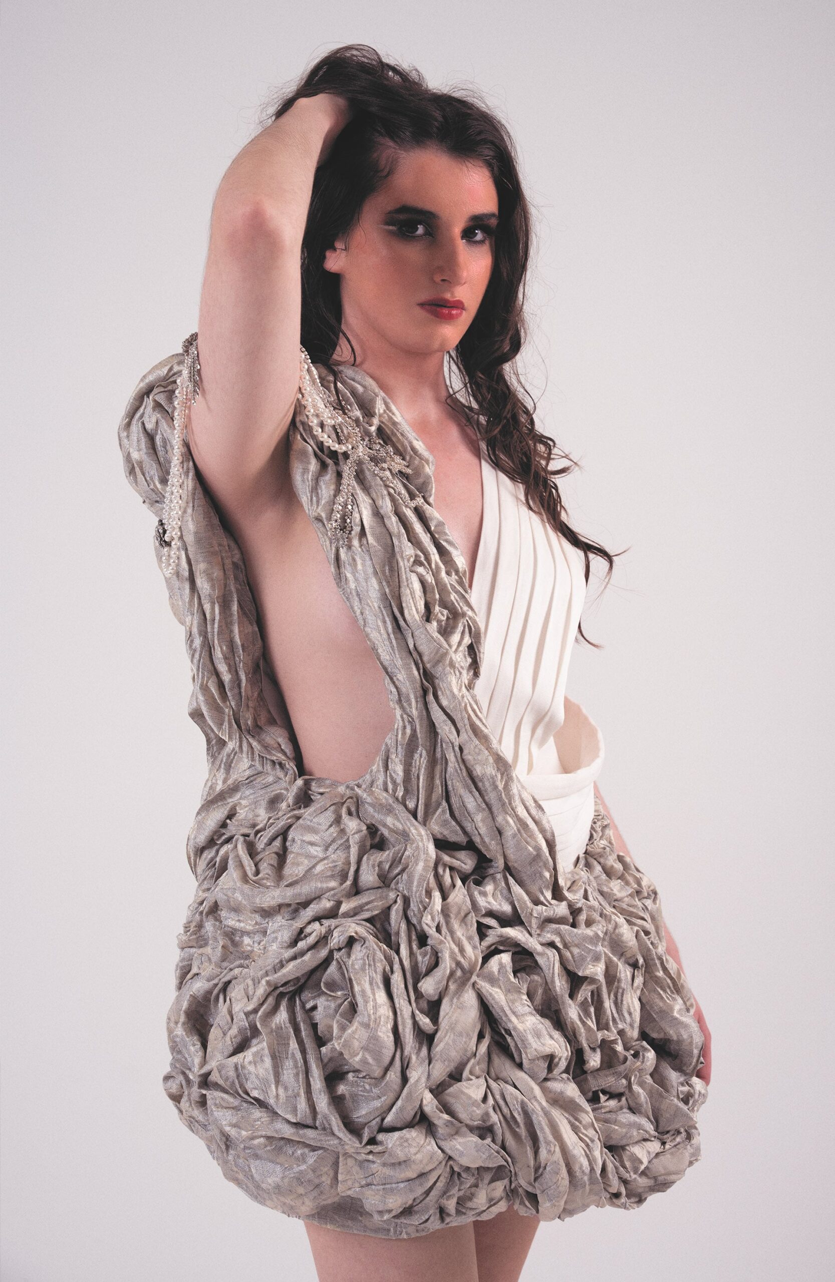 My S/S 26 collection ‘Birds do not Sing in Caves’ explores the tension between urban grandeur and decay, drawing inspiration from Thoreau’s ‘Walden’ and Michael Sorenson’s short story of the same name. The collection uses voluminous, organic forms evoking rot and nature’s resilience, contrasted with the sharp, geometric lines of cityscapes, visually expressing the duality of urban environments. Central to the concept is humanity’s struggle for survival amidst neglect, conveyed through dramatic, sculptural silhouettes that embody an avant-garde, high-fashion aesthetic. Sustainability is integral to everything I design and especially this collection. All materials are sourced from deadstock and upcycled fabrics, giving new purpose to unused textiles and extending their lifecycle. Each garment is constructed with minimal waste, using wide fabric sheets that are gathered or pleated, allowing for easy dismantling and remaking at the end of their lifecycle. The designs avoid fleeting fashion trends, focusing instead on longevity and adaptability. Each piece is unique, encourages long term wear, and can be easily altered to fit changing body shapes. This approach not only reduces waste but also promotes a more mindful, sustainable relationship with clothing.