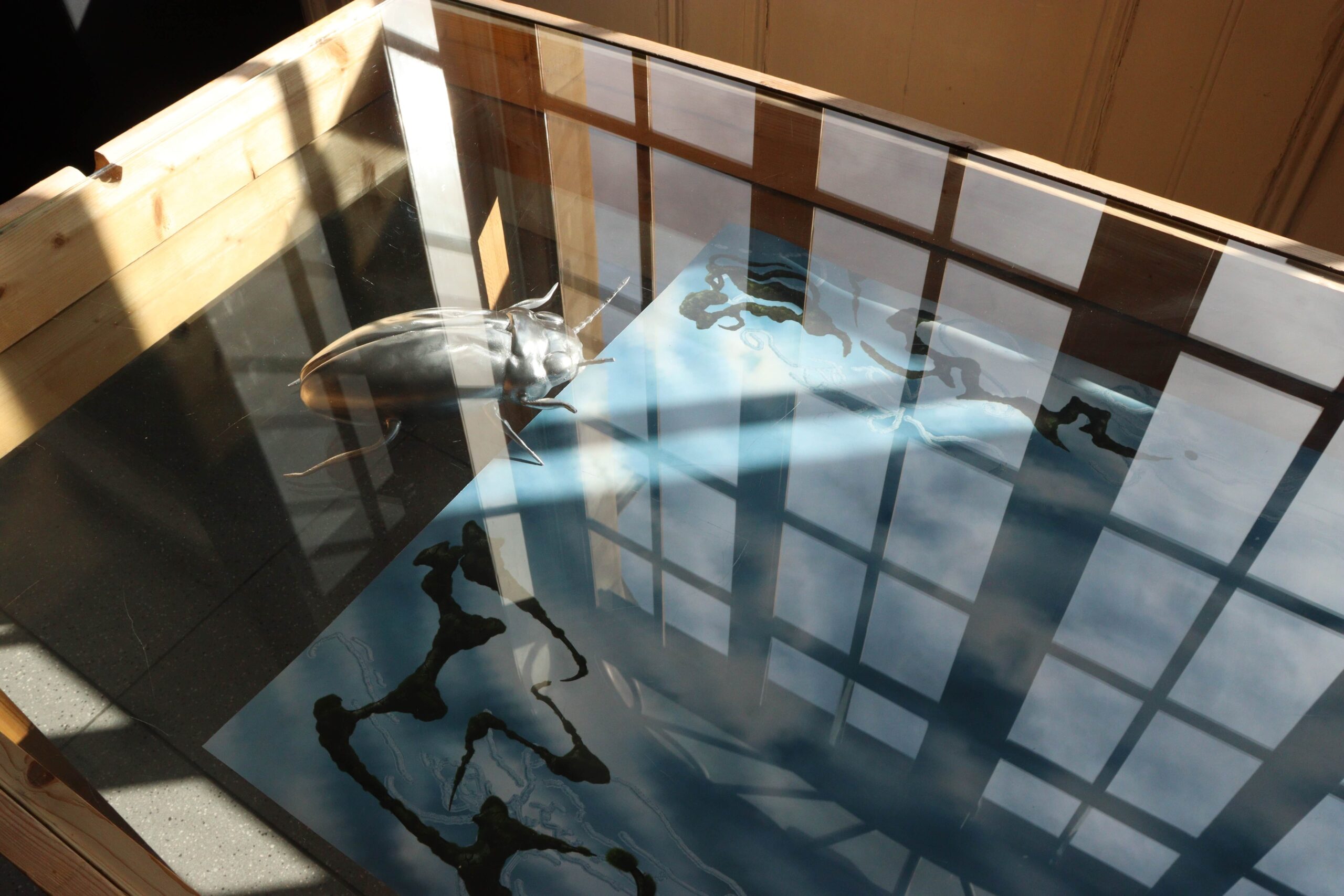 My practice weaves Irish oral history into visual forms to explore and lament on the lasting consequences of the early 19th century Ordnance Survey. During this time, the land was commodified, having been measured by chains. By examining the ecological impact of historical colonialism on language, culture and changes in land use, my work reveals the connection that has been lost between humans and nature. From in-depth reading of Irish folklore recorded in the National Folklore Collection, the National Botanic Gardens, and the National History Museum, I have gathered mythical stories of the revenge of nature on those who attempt to meddle with its sacred resources. Playing with the tension between reality and myth in Irish folklore, this body of work presents digital portals which pour into our reality in the form of 3D prints of the regionally extinct water beetle, Bidessus Minutissimus.