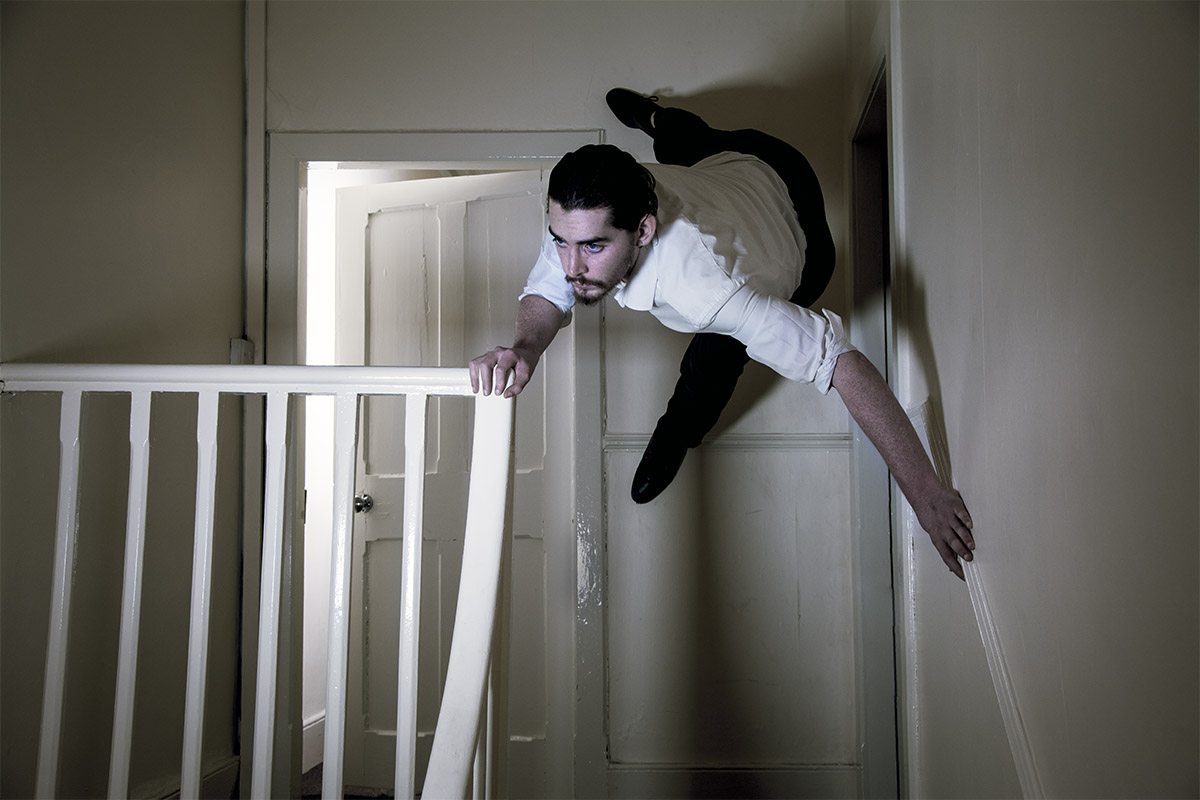 Naomhan's work is inspired by the concept of the uncanny home or ‘Das Unheimlich’. He places himself into strange positions around the home, fighting against gravity. Through the use of the male body, Naomhan subverts the notion of the ‘woman trapped by the home', comparing the concept of ‘maleness’ with the Latin prefix ‘male-’ a signifier for something abnormal or evil.