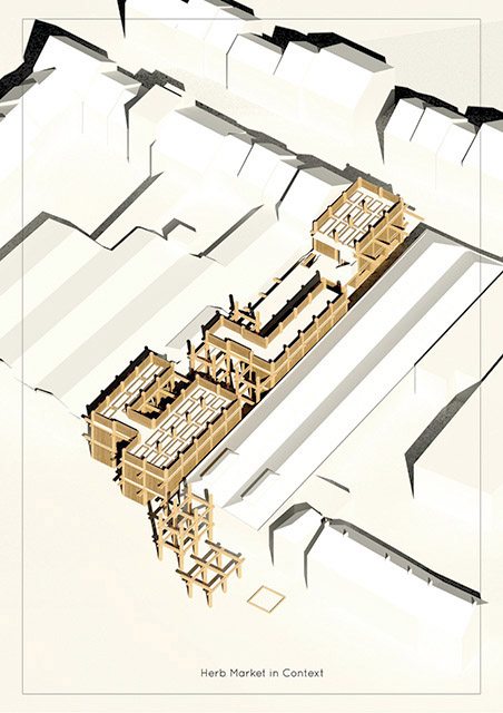 This project aims to question the lack of development of a herb growing and essential oil extraction industry in Ireland through the program of a herb market, herb distillery, herb drying and roof gardens on Cork City’s Coal Quay.