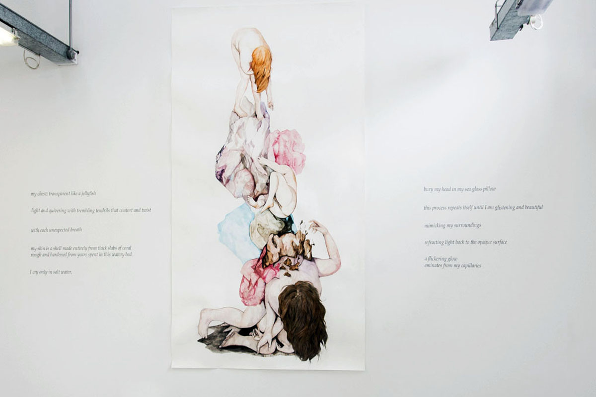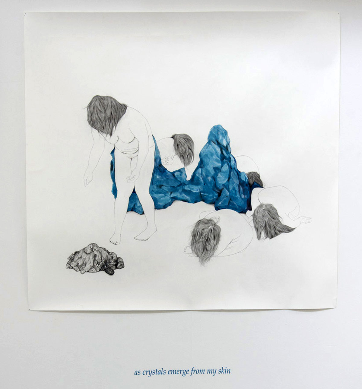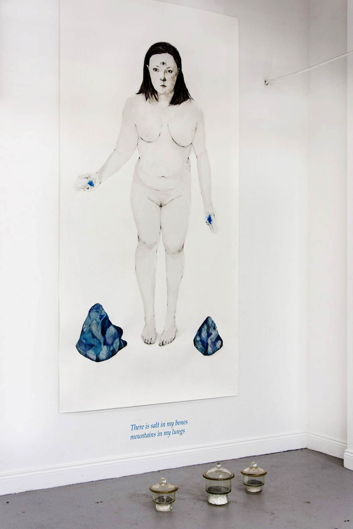 Humans have evolved from the sea, made of 60% water; we traverse this planet with vast oceans inside us. My work explores the interconnections between ecology, poetry and art.Drawings are used to construct narratives in which my body is a self-contained world filled with oceans, mountains and organic forms. Using poetry,I challenge the viewer to think about our impact on the natural environment