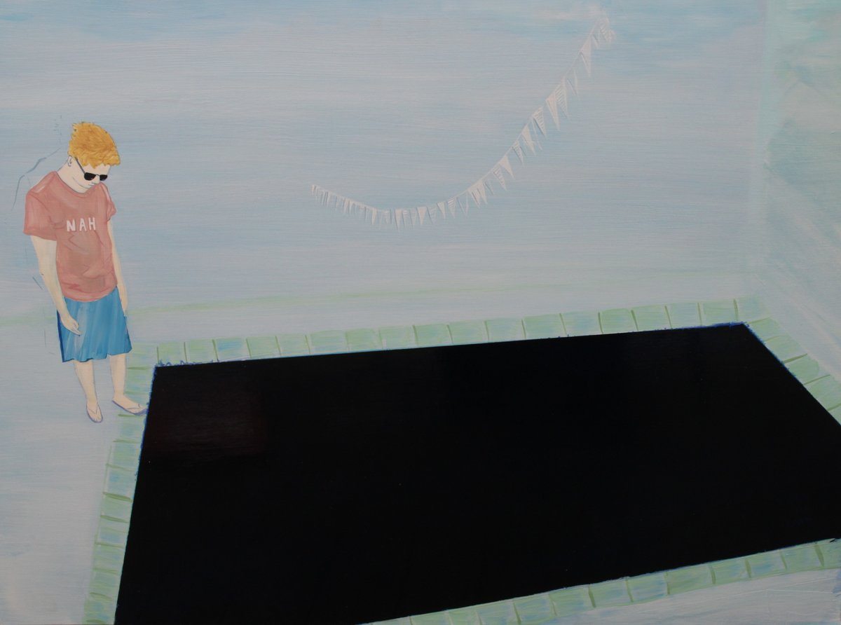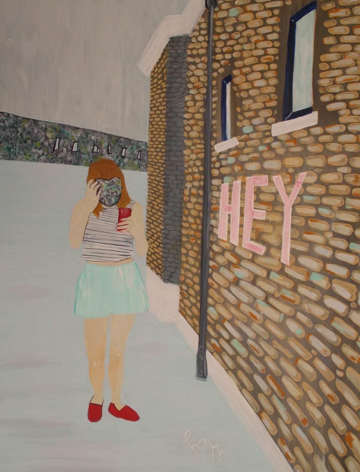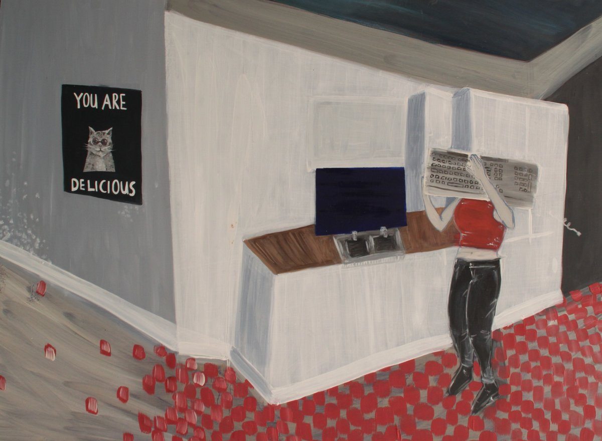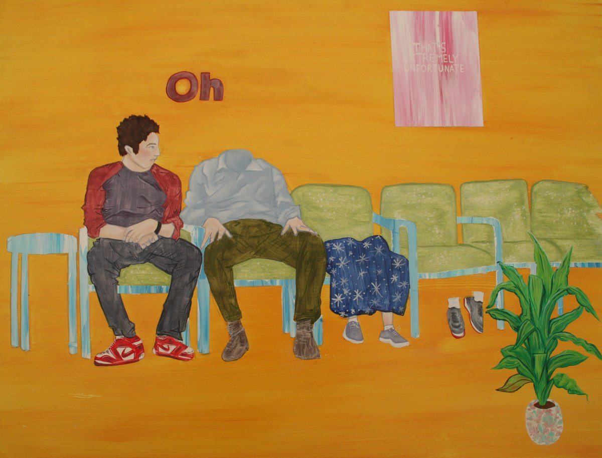 These paintings depict scenes, figures and text; appropriated, staged and fabricated, which form stills from unwritten narratives. Inspired by a love of binge-watching documentaries in quick succession, I am left with vague impressions of half-remembered scenes, blending together in recollection. My paintings are ambiguous snapshots of narratives that never happened.