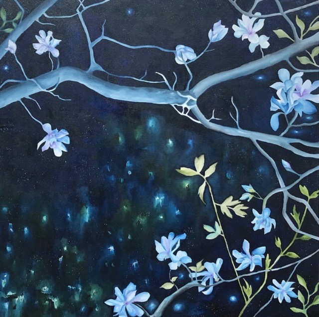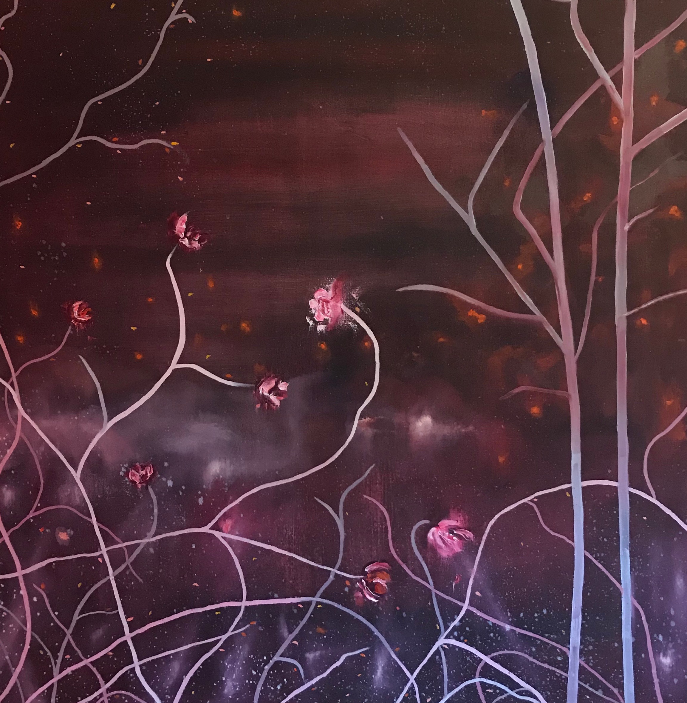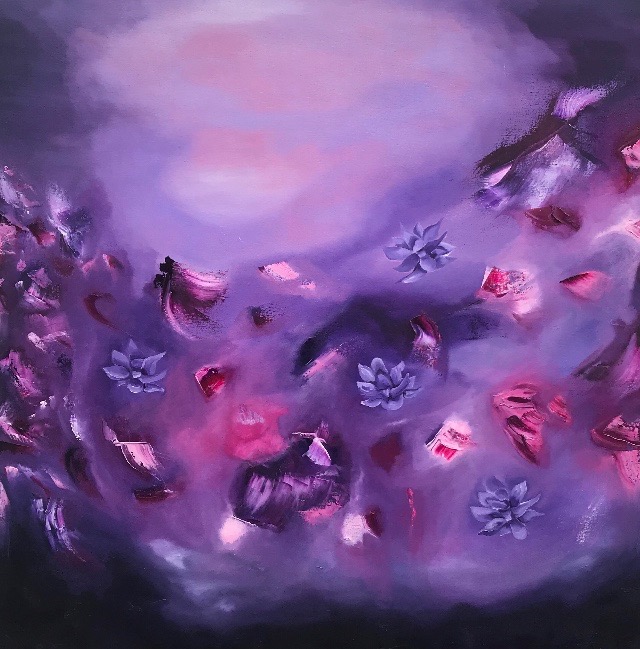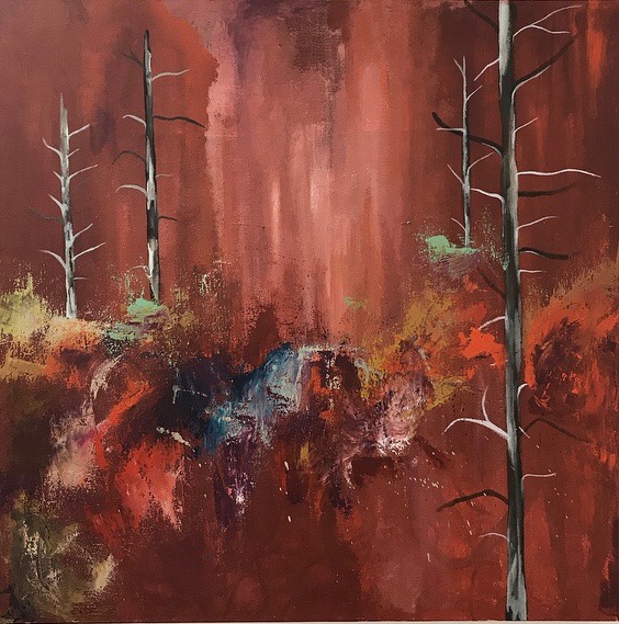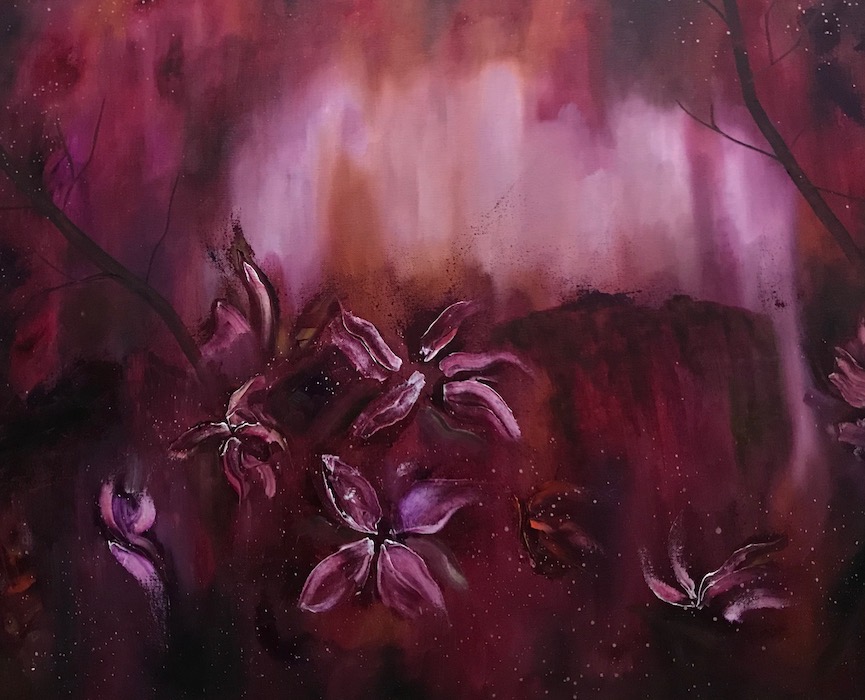 I work mainly with oil paint and the creation process for me begins with photographic references taken from the forests and untamed vegetation surrounding the area of the Slieve Aughty Mountain range. As an artist who grew up in the West of Ireland, my current work is inspired by the raw wilderness of the Irish landscape and the natural world. Each painting is a swarm of colour and release.