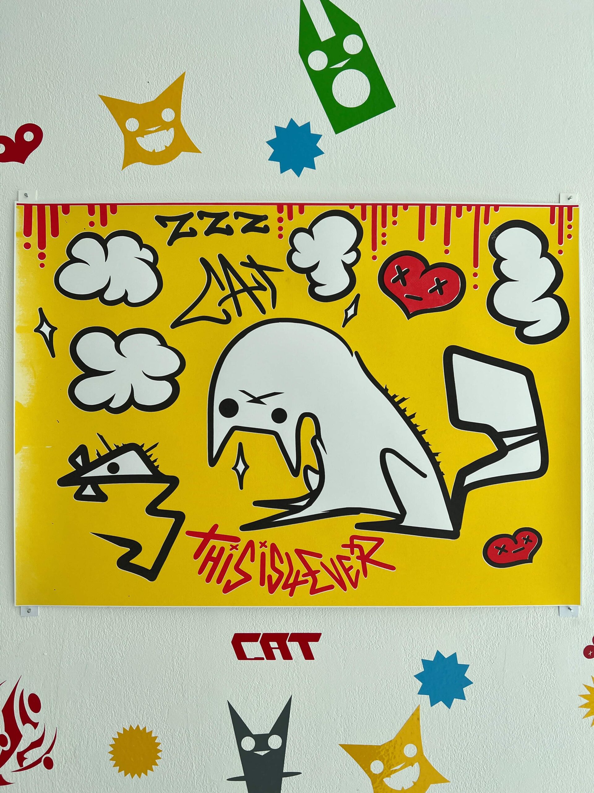 Drawing inspiration from the vibrant graphics of EDM culture spanning the 80s, 90s, and present, my art is a fusion of captivating compositions that harmoniously blend elements from techno and dance music flyers, posters, and cover arts. At the heart of my creative expression lies a unique focus on characterizing cats, which serves as a powerful medium to convey diverse ideas and emotions within my imagery.Primarily specializing in poster format screen prints, I meticulously design digital stencils to bring my vision to life. My artistic toolkit includes a seamless integration of screenprint, risograph, and digital art, each carefully selected to enhance the visual impact of my creations. Emphasizing both readability and composition, I craft large-scale posters with multiple layers of rich, dynamic colors, making them visually engaging and captivating.What sets my work apart is its universal appeal, attracting individuals from various age groups and diverse backgrounds. Through my art, I aim to create a compelling and immersive experience that resonates deeply with a broad audience.