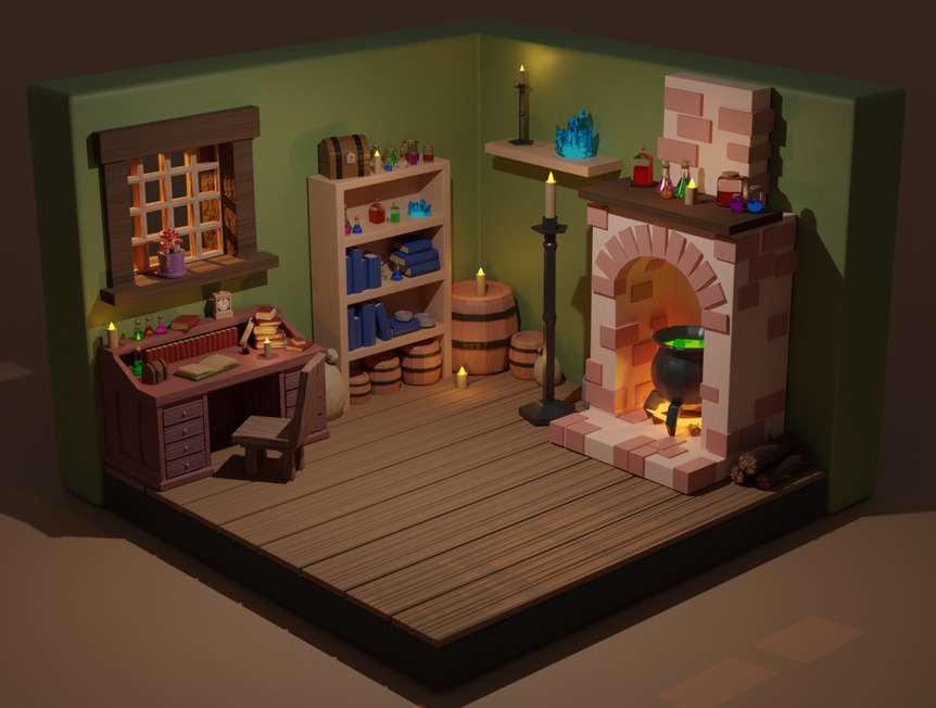 I am inspired by the art in video games and how they are connected to animation. My work is a 3D computer rendered image I created myself and assembling the assets into a scene.
