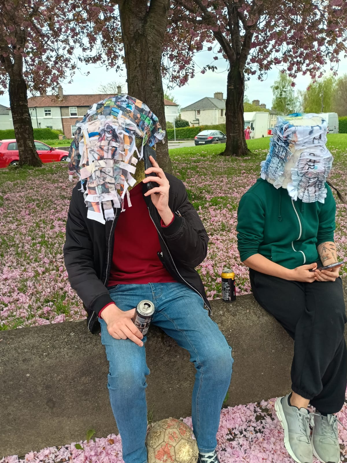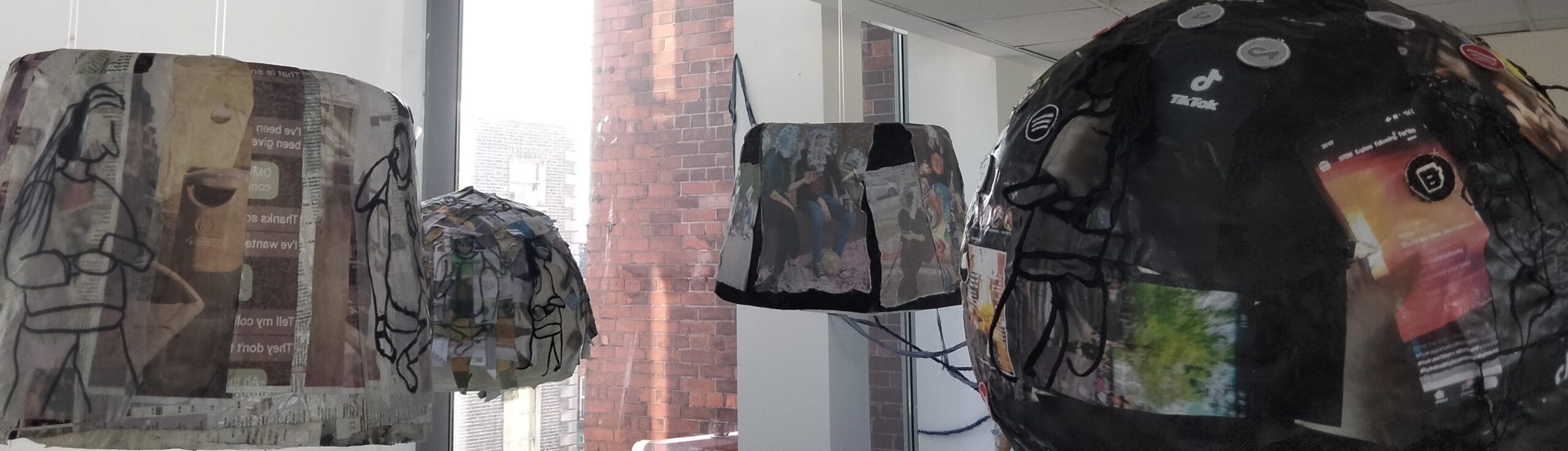 I am Orna Costelloe Dunne. I am a Dublin-based artist and designer. I have an interest in fashion and printed Textile pieces that blur the lines between fashion and art. I work with a variety of found objects, repurposing materials, different textile techniques, and bold printed CAD, working with Photoshop, mixing digital media with different materials.I like working on different topics that happen around us. I like raising people's awareness of different situations in the world. I use storytelling through my work, different topics that may be hard to talk about, into wearable garments or installation sculpture pieces that have been displayed in different shop windows and gallery spaces For my final year degree project, called 'Swiping The Day Away', I am working on an interactive and installation of sculpture pieces to show how we are wasting time on social media and our phones. I have created different big sculpture balls to be an interactive piece where we show different situations or activities where we are on our phones, not being present with people around us. These are pieces that show different situations and activities that occur while we are on our phones. How our phones are consuming our minds and bodies I have created different wearable masks to highlight and to be photographed on different people in different locations, like the supermarket or hanging out with friends, to create an insight into how humans these days go on while living in a world with technology, this modern epidemic.