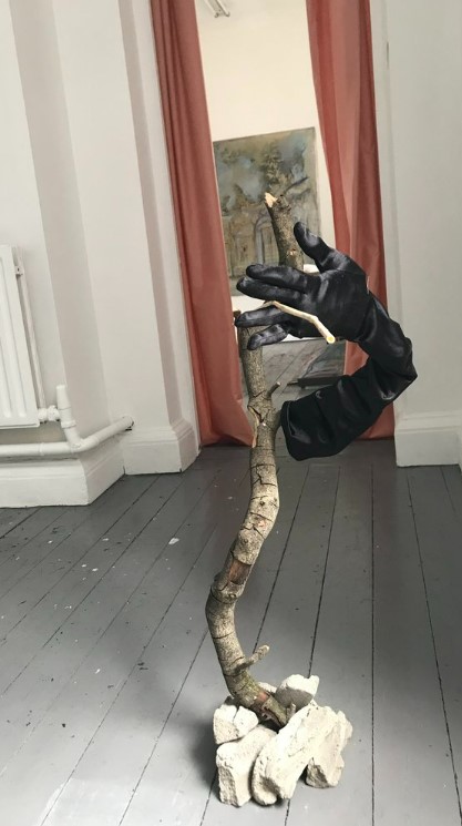 My approach to painting strides between the representational, illusionistic possibilities of painting and immersion in its material quality. I am interested in how images can stage a two-fold relationship between real and imaginary worlds. I examine painting’s capacity for the mercurial, focusing on the shifts between observational and imaginary in the construction of an image. Images created in the work take inspiration from online sources, as well as my own personal photographs. Conceptually the work draws on ideas of Romanticism, the power of imagination, individualism, transcendence. Through paintings and props I stage a fragmented narrative with settings and figures representing the performer, the adventurer, the mystic, the artist at work.Alongside the paintings I develop a narrative framework of the events and characters that emerge. As work develops it is often very surprising to me. The voice or voices in the text are a link to connect the pieces together as a whole.