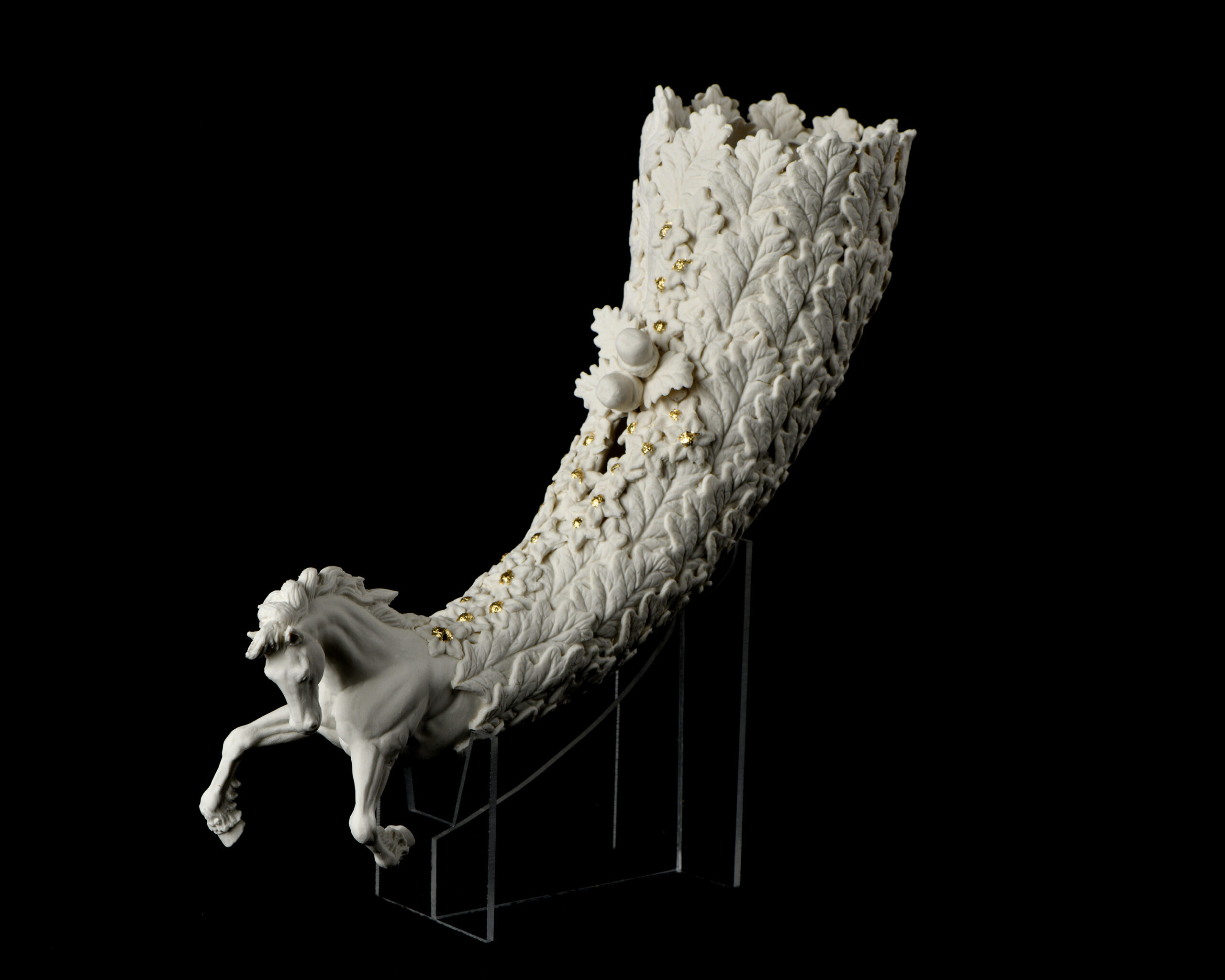 My work is inspired by Brehon law, the ancient legal system of Ireland, recognized the interconnectedness of humans and the natural world. This perspective is rooted in animism, the belief that all things, including inanimate objects, have a spiritual essence. Animism emphasizes the importance of respecting and living in harmony with the environment, recognizing that our actions have consequences beyond ourselves. Incorporating Celtic mythical legends with inspiration from the classical ceramic works of Wedgwood and Meissen I want to reflect this appreciation of the natural world's beauty. These works incorporate elements of nature, such as flora and fauna, into their designs, emphasizing the inherent beauty and value of the world around us.