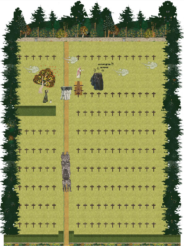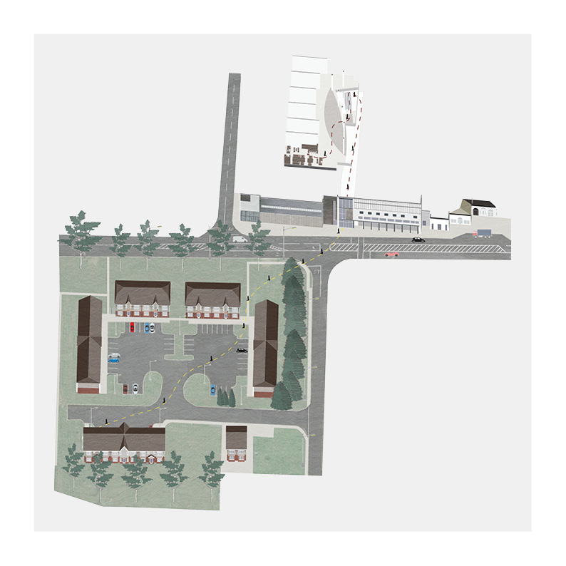 The interest of the work lies in the examination of rural identity and is concerned with the rituals of life that give a temporal structure to a community. To articulate an understanding of how rituals are woven through the social and built fabric of a town, initial research focused on funeral rites in rural Ireland. My thesis project culminated in a built intervention in the new town of Shannon.