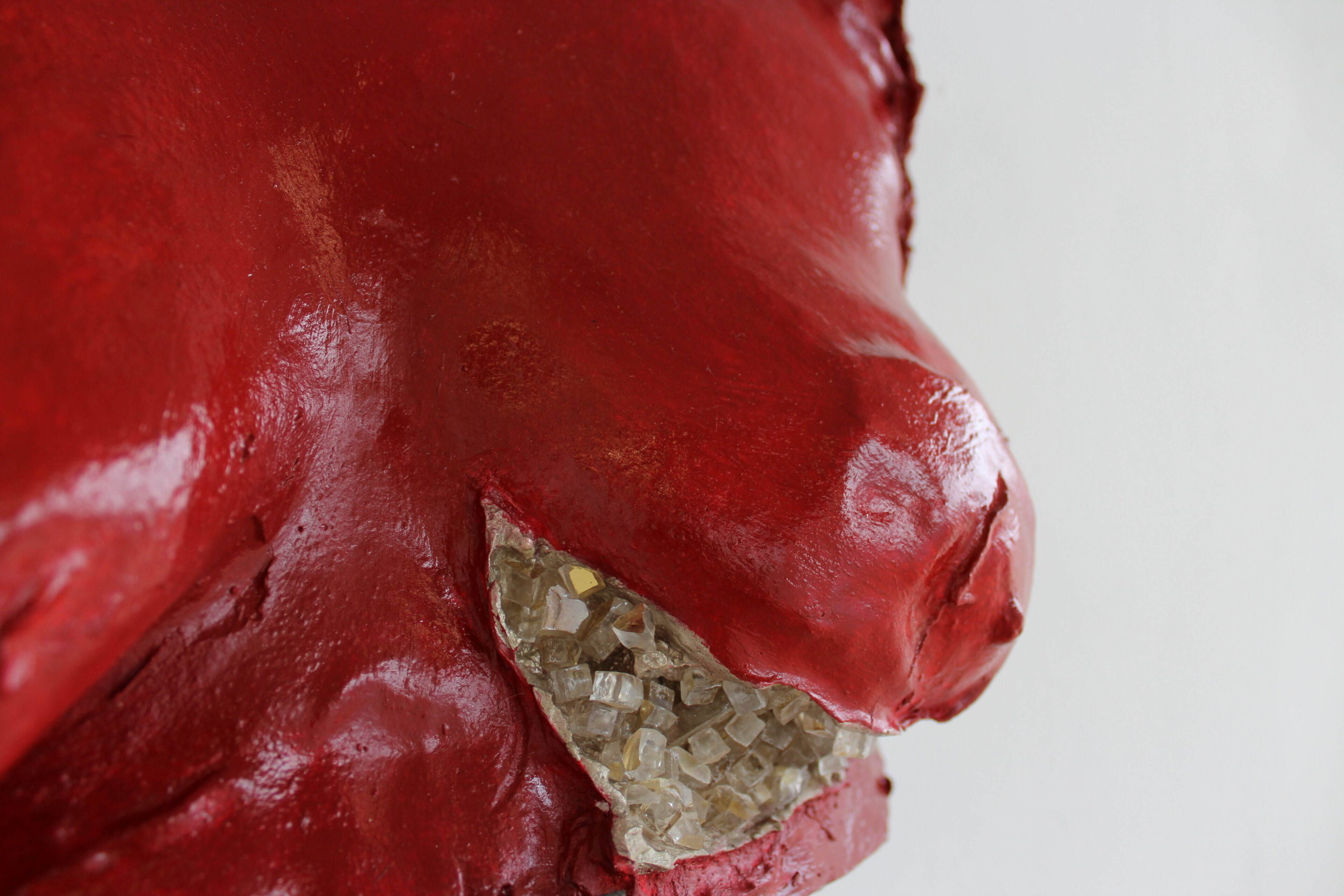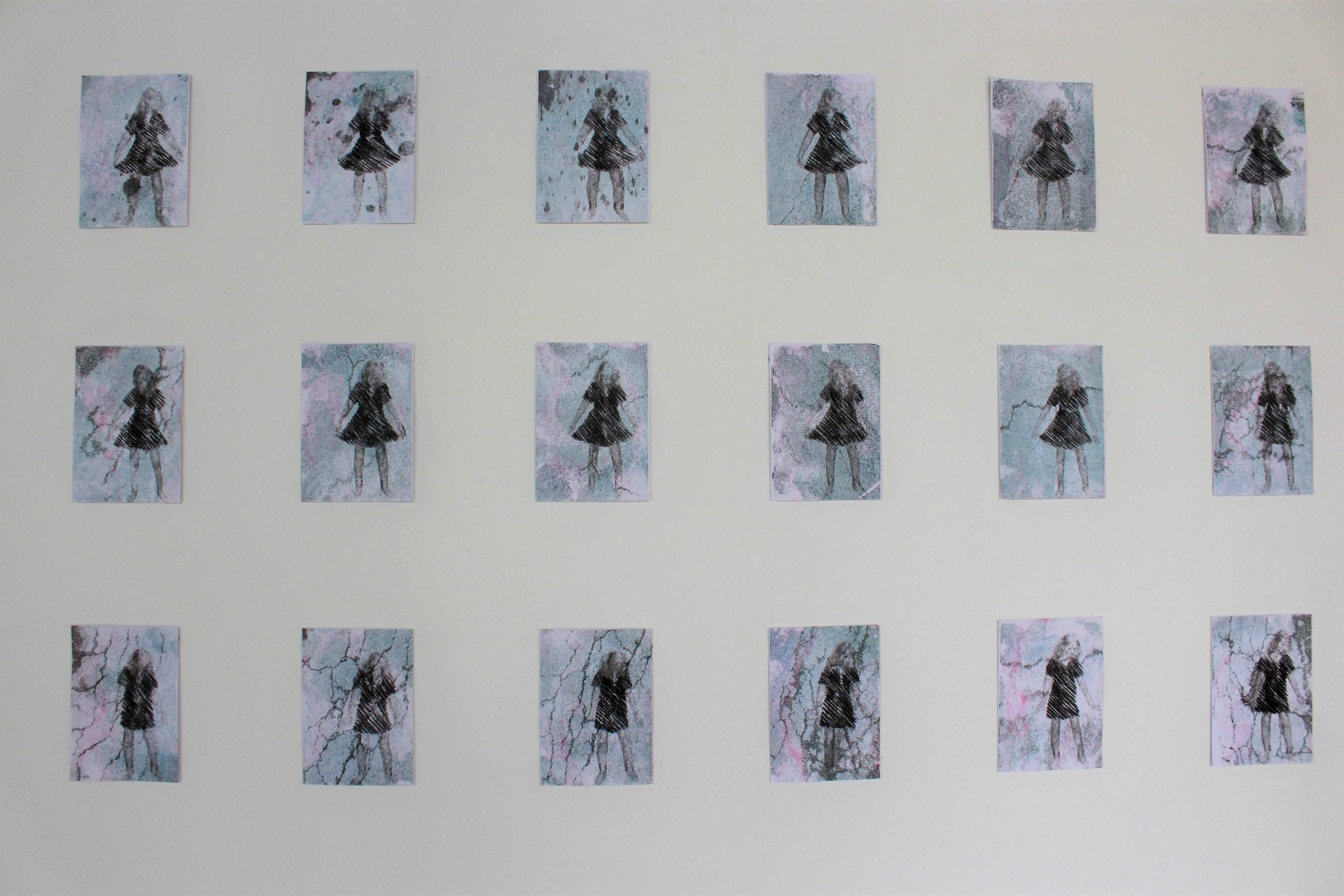 Frye's parable of culture as a conventional stage play asserts women as stagehands who remain invisible and "disloyal to civilisation". She states that the lesbian mode of seeing undercuts this play mechanism, as once the invisible woman learns that she can be seen, she learns that she too can "author perception". My work develops upon this lesbian mode of seeing, examining the lesbian conflict towards presenting as feminine and the dissociation of re-living traumatic memories as a queer woman. Using mixed media, sculpture, lens and illustration, I create disembodied accounts of my experience as a queer woman and re-illustrate my personal history from future perspectives. In projecting my experiences into an artistic space free of boundaries, I create new realities of fantastical otherness and horror which aim to investigate the inner world of queerness. Using my own image in my work, I assign myself as the central figure in the narrative, repurposing memories for artistic catharsis.