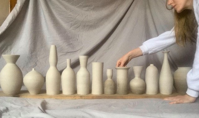I create bodies of work that encourage the audience to make human connections to a collection of inanimate objects. I combine the contemporary Scandinavian thrown pottery design authentic of Copenhagen with a modernised colour pallet of the rural Strangford landscape in Northern Ireland. Inspired by the classic vase I play with the curves and angles of each form, making them in a linear sequence.