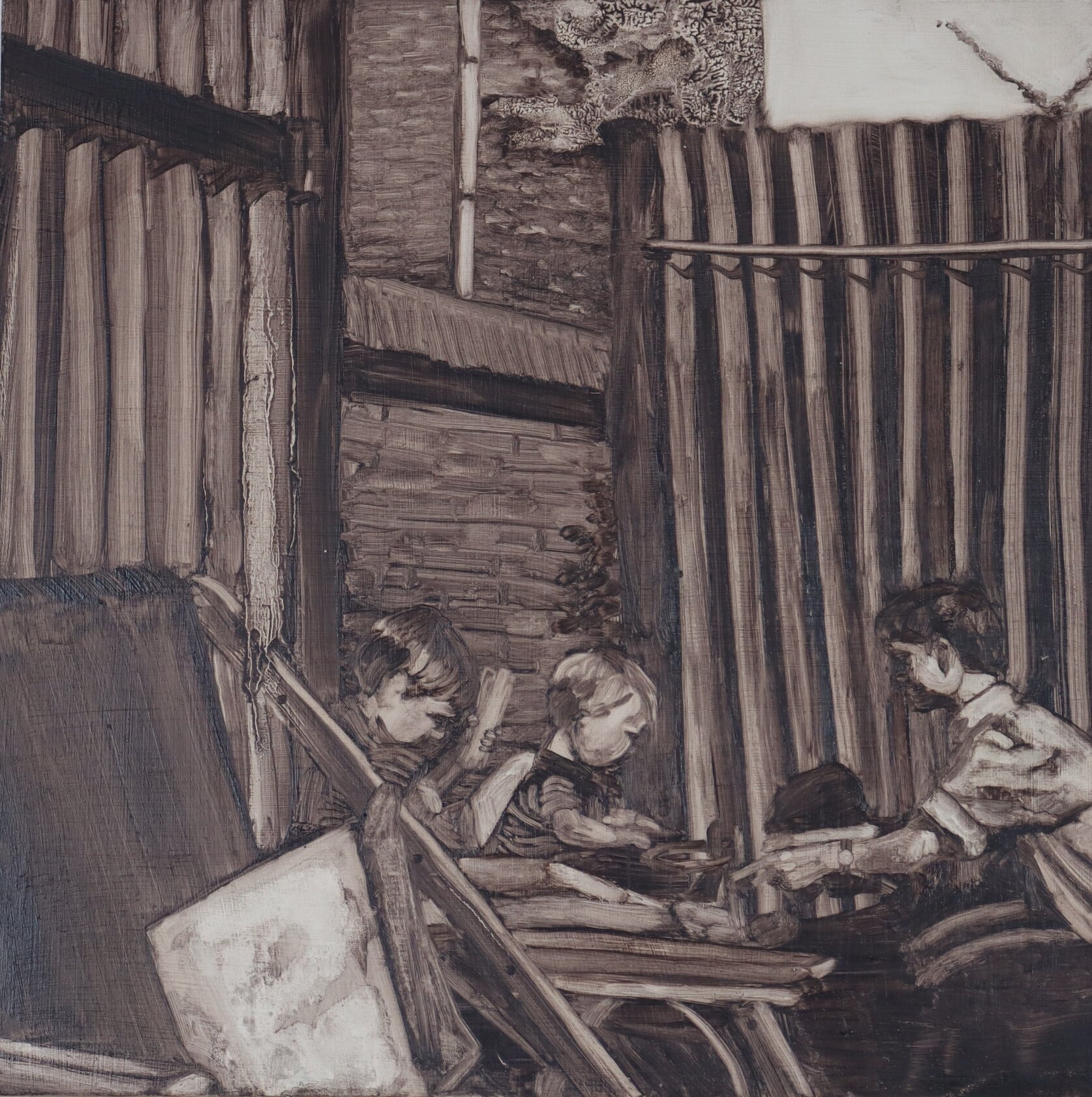 From looking at the image overload that we are dealing with in our lives I began to think about what an image actually is and does, and about the relationship we have with images. I have been working with an archive of old family photos and questions arose such as how images affect our memory and how are we going to remember the presence, as the photos I have been working with weren’t made with the purpose of being shared on social media, they were taken for a small audience. The photos that wouldn’t necessarily make it to a photo album interested me most, as these are of in-between moments, of non-events. The painting process of these images brings them into the present and adds an extra element of time. Photos that were recorded in a split second in the past, start to lead a life of their own.