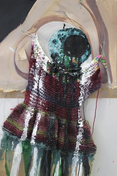 This form of transformation is the theme of my work, which is an exploration of identity, mutilation then re-construction. The images are painted and then transformed through the processes of ripping, cutting, stuffing with material and collage. Their intention is to evoke an sense of dis-figuration.