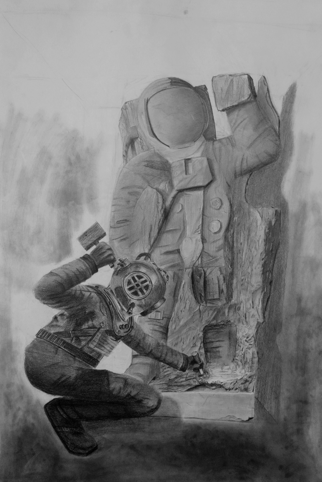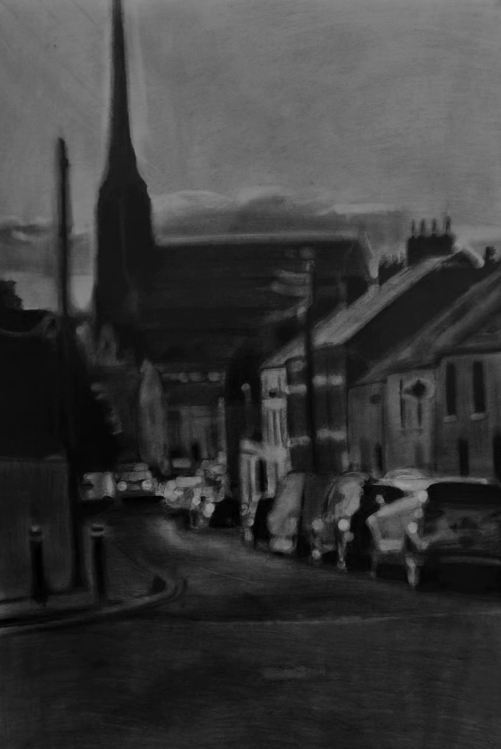 Graphite has been the medium i have used for most of my creative practice. I am inspired by black and white film and photography, so the idea of graphite made sense to me on an emotional level. Working with graphite pencil, I create work that mixes the surreal, with the hyperreal. I like hyperreal for the detail, but the surreal visuals is something i am intrigued most by. My work shows the first hand experiences of growing up in my hometown of Wexford, typically by showing locations, and people. My techniques often show people with their faces covered as a symbolic representation of their emotions and feelings, and location based works to show the nostalgic feelings i have with the area.