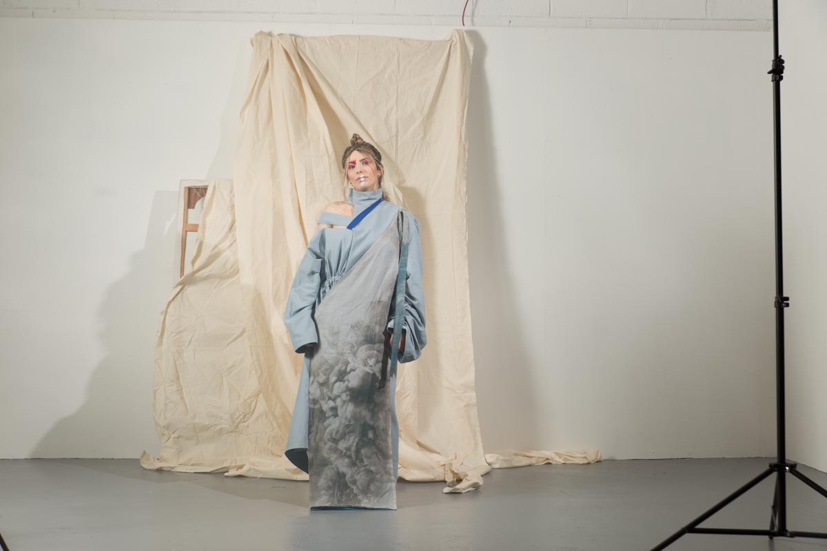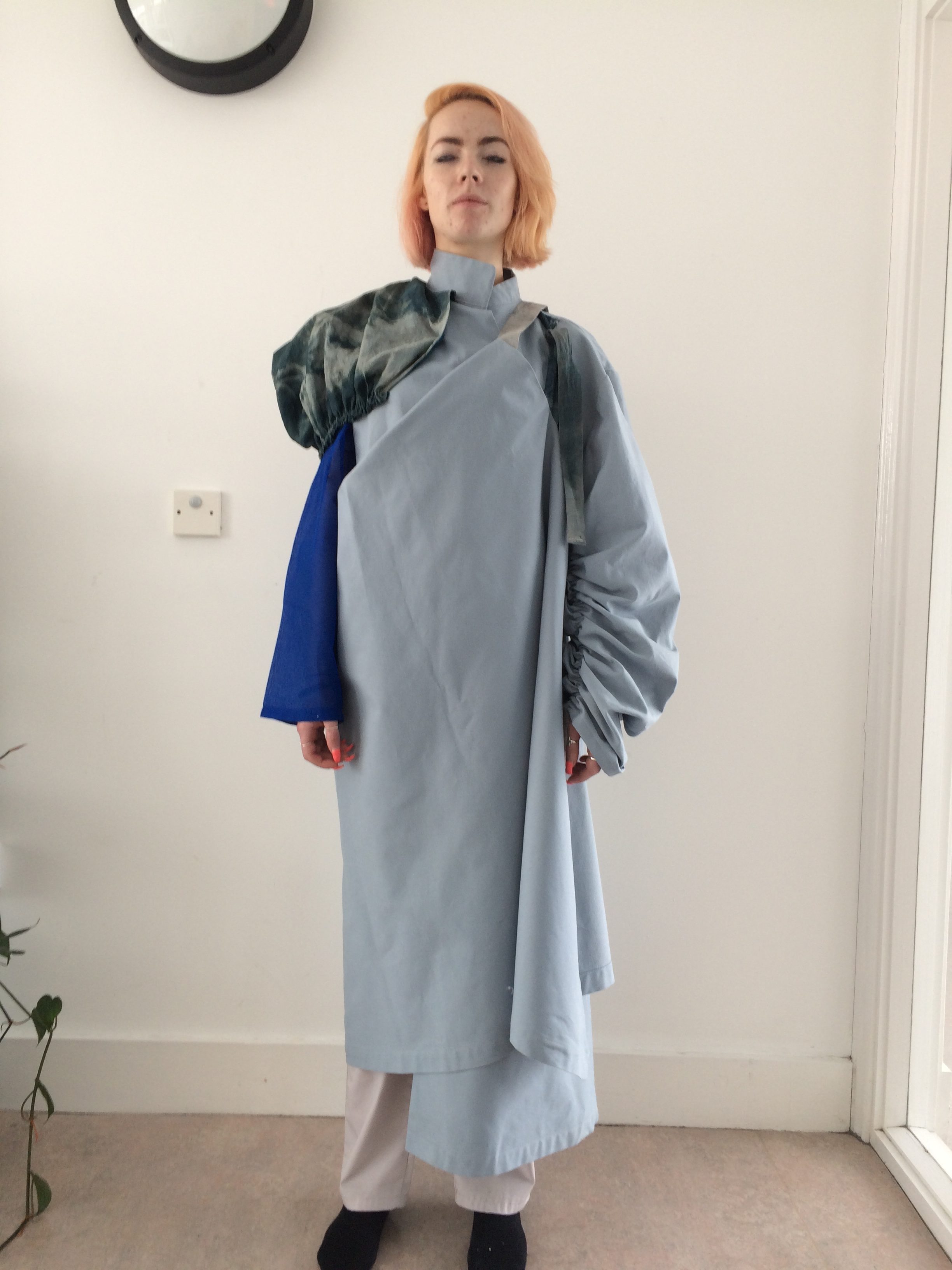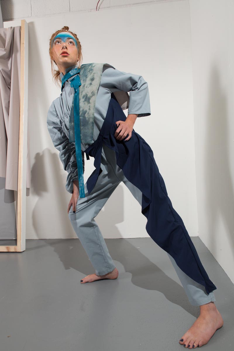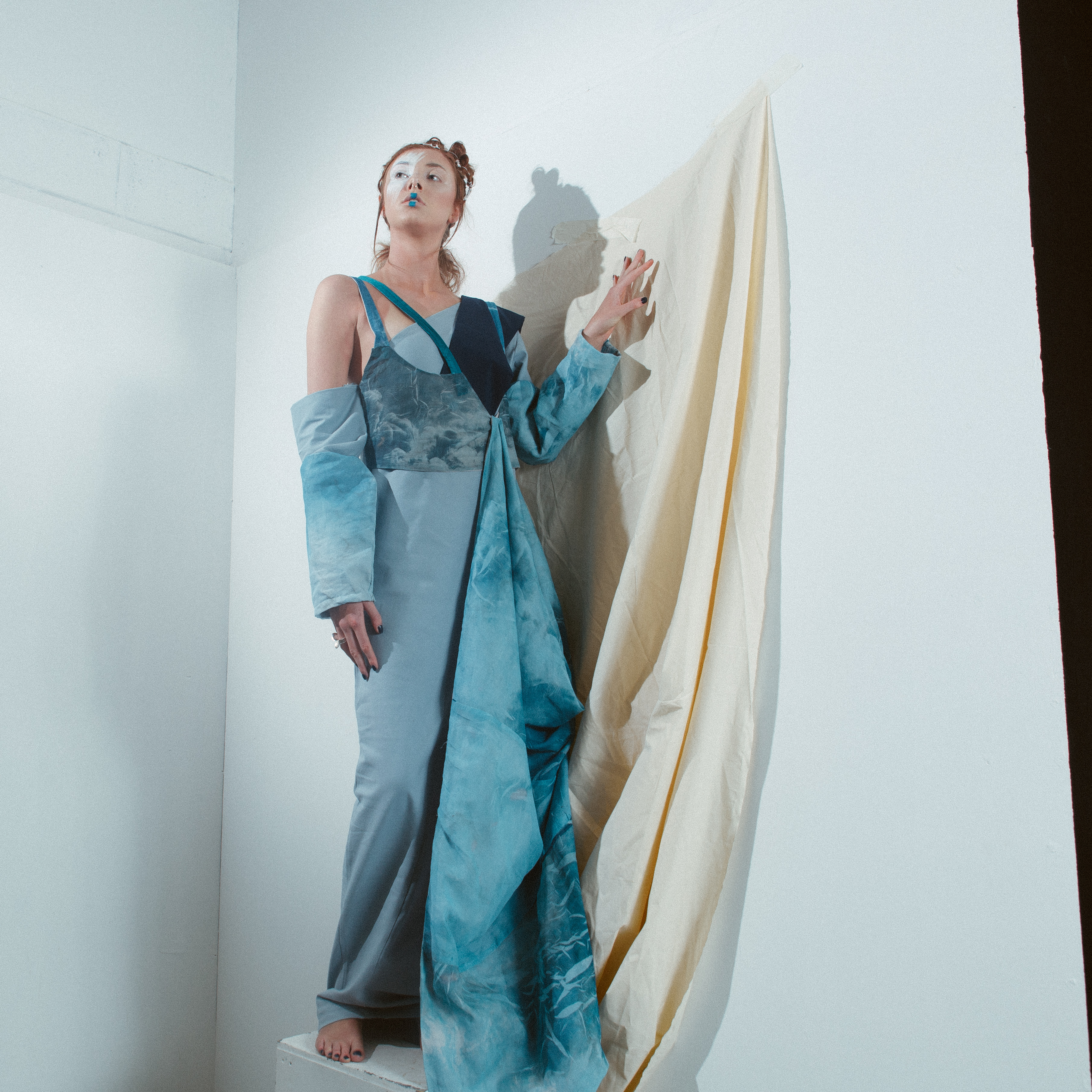 This collection is inspired by the concept of transcending the subconscious mind. I wanted to reflect the process of unfolding the subconscious by creating various folds in my garments, with every look more of the self is revealed. I challenged myself to have a sustainable approach to my collection. Traditional pattern cutting is combined with zero waste cutting & stand working & reclaimed fabric