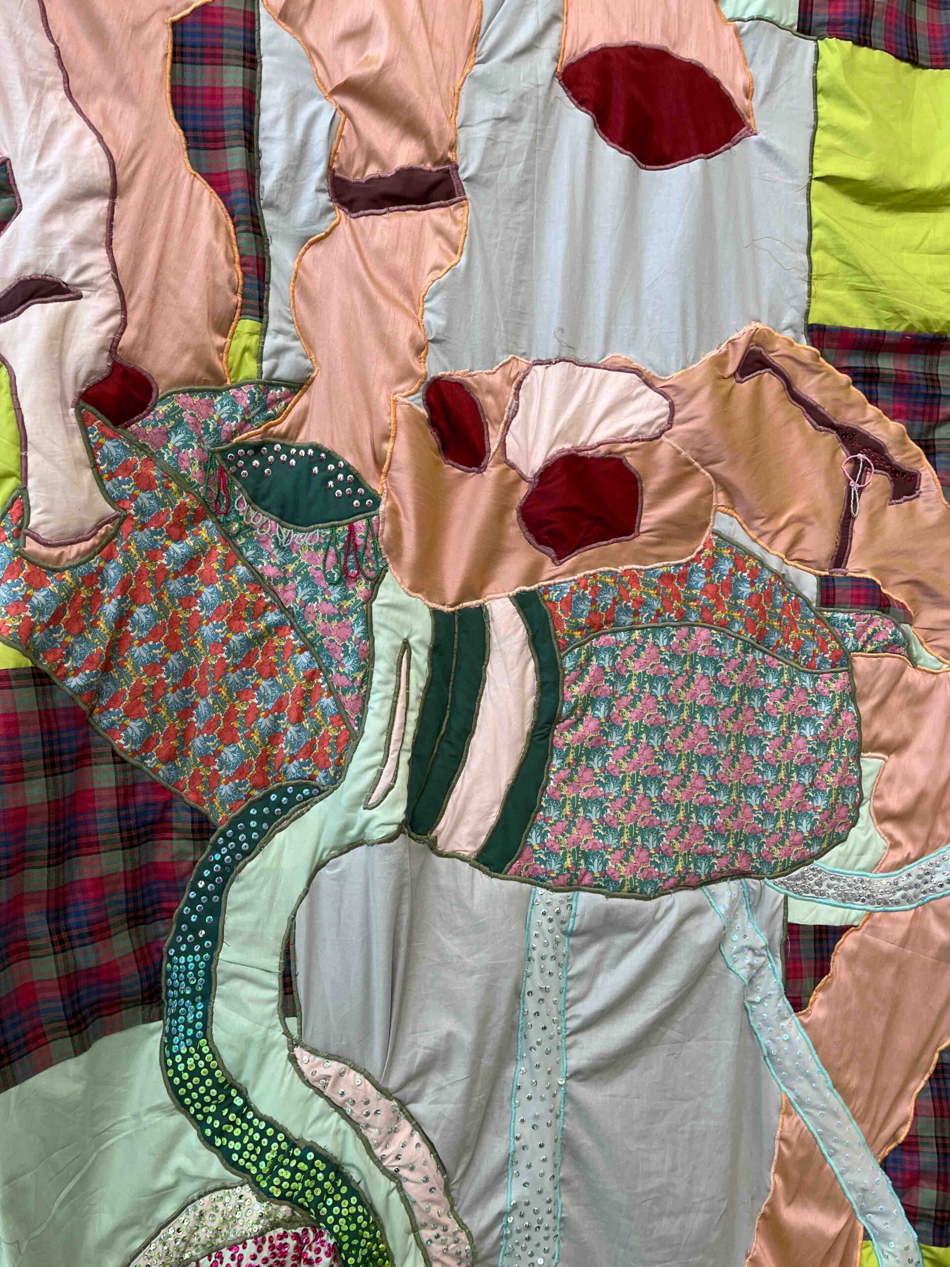 I am a printmaker and installation-based artist. My practice explores the body and the landscape as vessels, merging the land and the body into a receptacle for unspoken and undocumented familial and cultural histories. Within my work, the body becomes a site of tension and fragility. Like the landscape, the body is vulnerable to being shaped and restrained by extrinsic patriarchal and cultural power structures. I create soft sculptures that echo bodily forms, placing them in landscapes tied to familial memory. From the previously sealed archives of a family member’s mother and baby homes records. I try to recover unspoken narratives and reconnect gendered administrative histories through quilt making. Through quilt making, I reclaim a historically feminised art form, challenging the boundaries between art and labour. I explore the fluid, fragile connections between the body and nature through etching, photography, and screen printing. My process involves the continual layering and redaction of processes, mirroring the complexities of memory, feminist histories, and trauma.