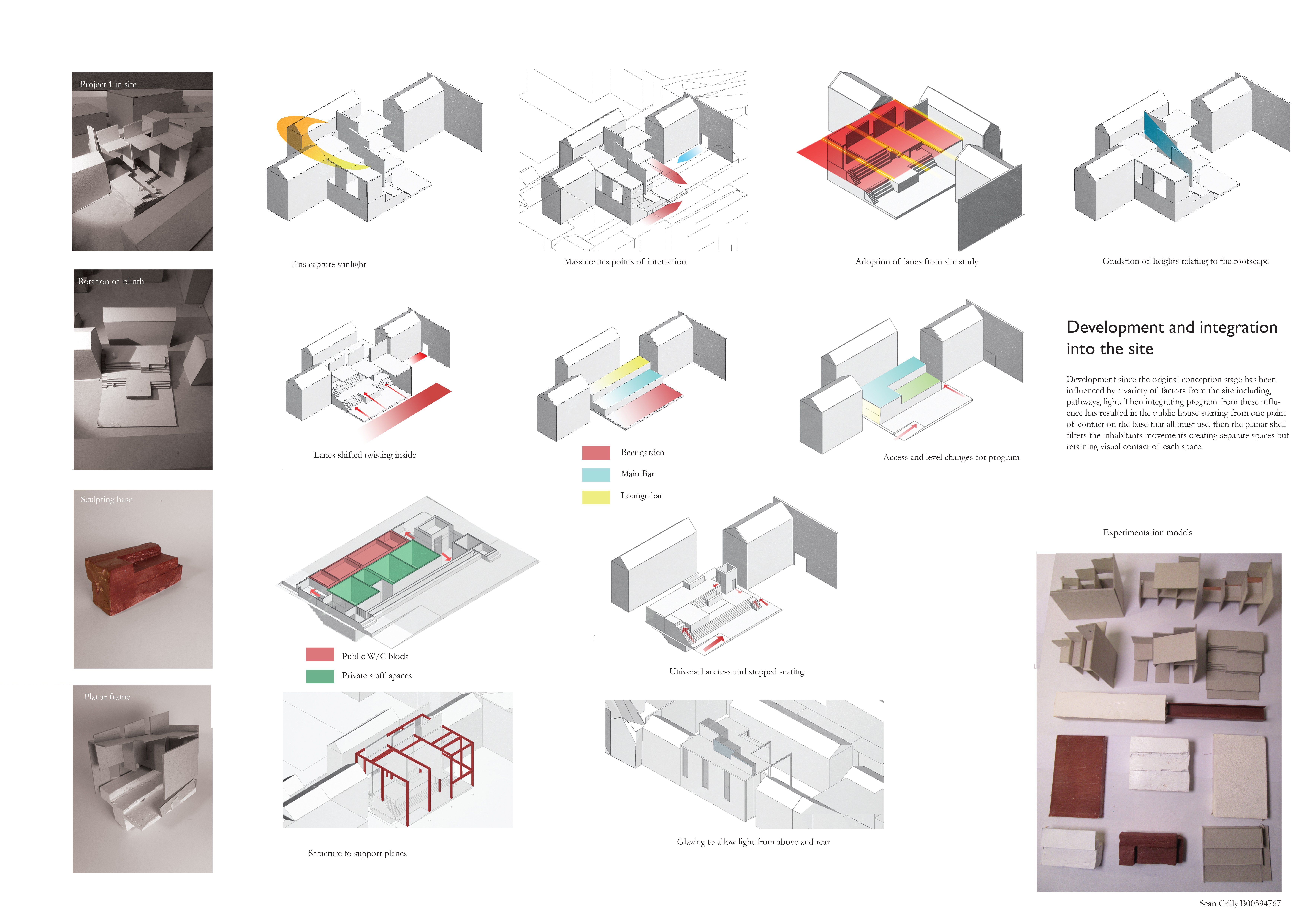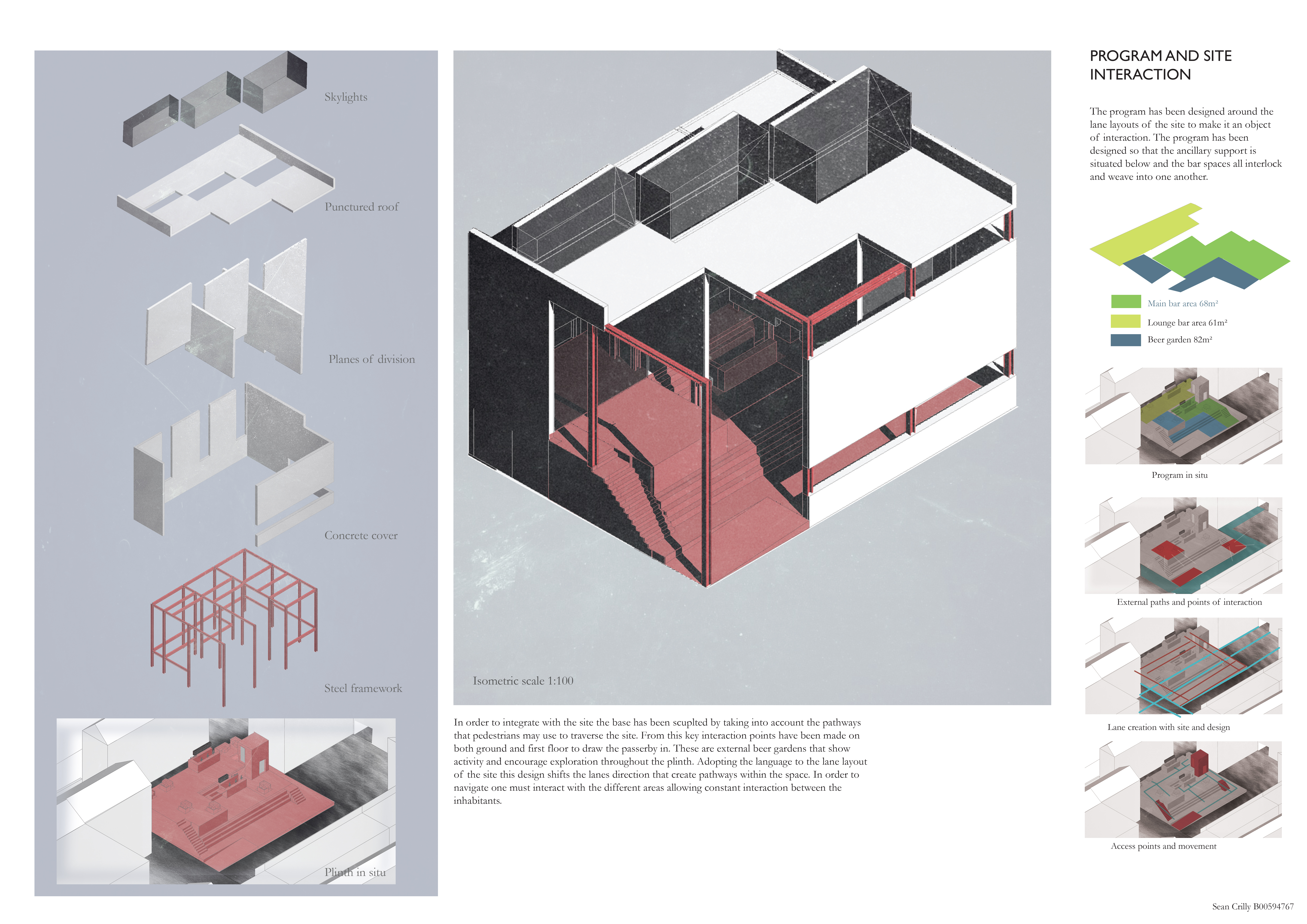 The 'Urban Pub' situated in 'Cathedral Quarter' in Belfast draws upon the pre-existing laneways to fill a gap site between two narrow existing buildings. Acting as a boundary between the Laneway whilst opening up on the south side allowing light to enter and the bar to spill out into the courtyard. The deceptively simple box contains a complex, poetic synthesis of light, form and materials.