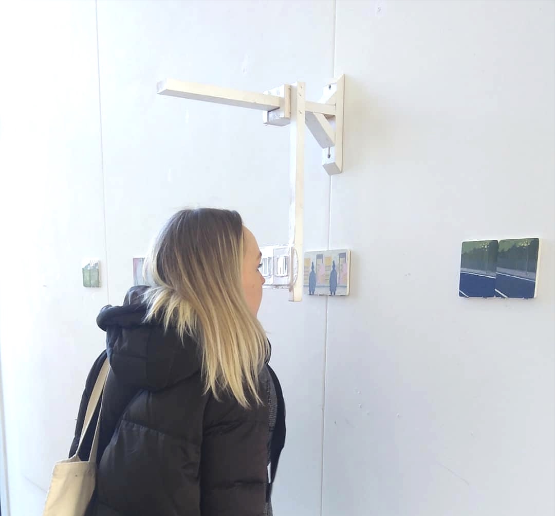 Influenced by the mechanics and technicalities of 18th century stereoscopic viewing methods, I have created ‘doubled paintings’. The images presented within the work explore themes of memory and perception. They are a collage of references of fleeting moments; of the mundane, banal facets of daily life. Through viewer interaction, lenses and mirrors are used to create a 3-D hallucinate image.