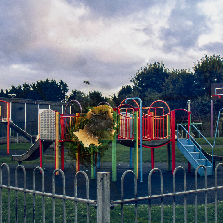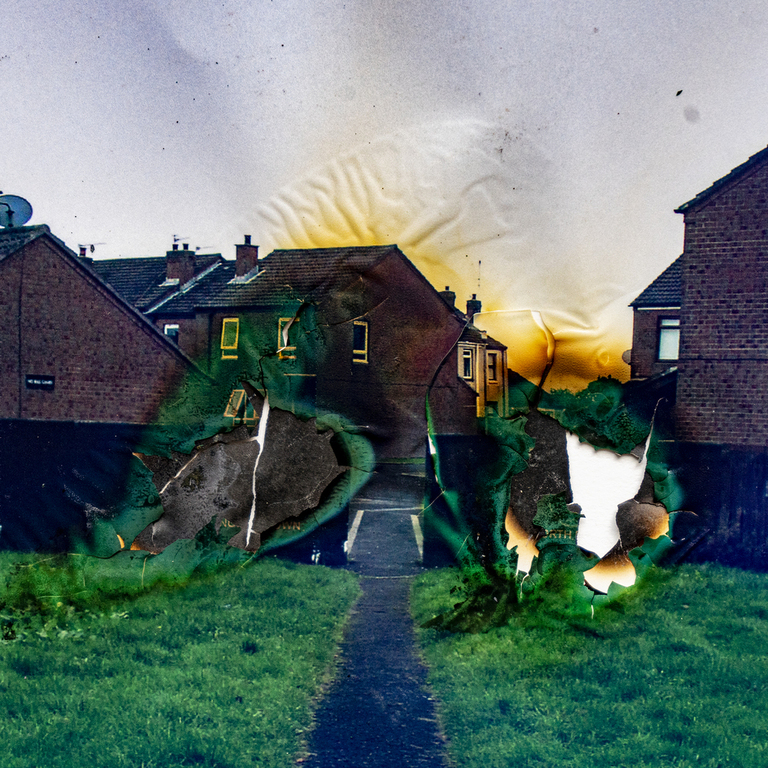 Through violent burning interventions in the images, I attempt to process my push-and-pull relationship with the council estate where I grew up and continue to live in Northern Ireland. Despite living here my whole life, I’m an outsider, failing to fit in with the sectarian attitudes and behaviour expected of me.