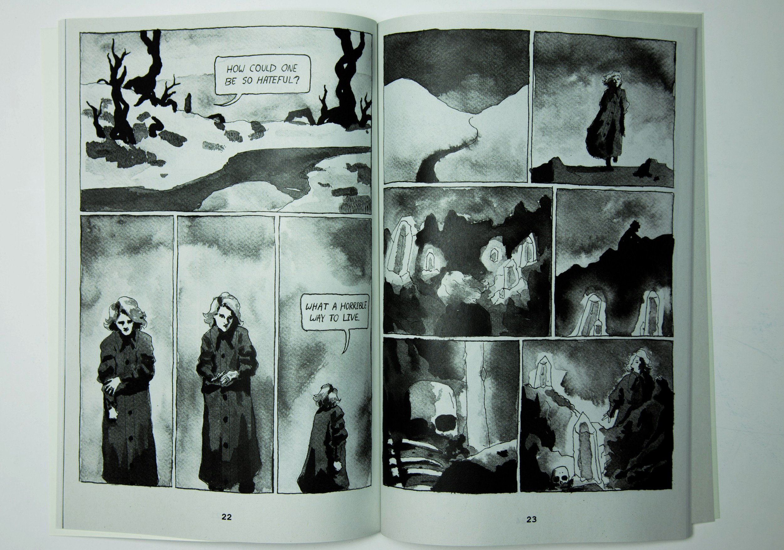 Growing up with an Italian mother and a German father, I have had extensive exposure to diverse cultural experiences which serve as a key inspiration for my illustration. An interest in storytelling developed from the stories shared by my parents when I was a small child. My particular influence derives from video games, movies and graphic novels across many genres, specifically science fiction.When examining science fiction, I came to the realisation that stories, or folklore, are retold and passed down, evolving through generations. Through this, I looked back at the fairy tales my parents shared with me and picked one to share with you, as a science fiction story. The comic book format provides the perfect medium in which to work, with a mix of digital and traditional media, such as black ink. The results is a body of work focusing on mystery and discovery.