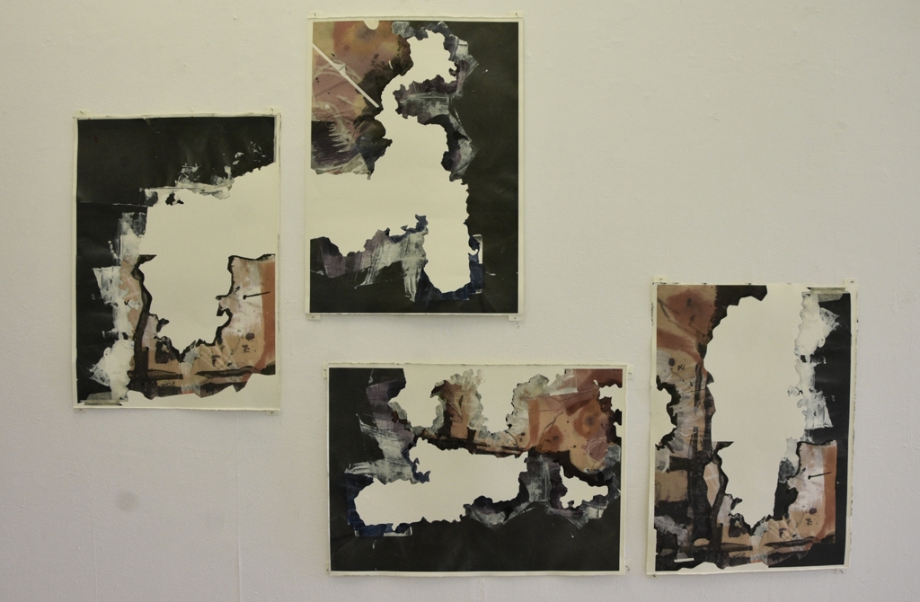My work explores and examines ideas around the body, encompassing physical, psychological, emotional connections between bodies and their markings. In particular, there is an emphasis placed on birthmarks and bruising. I utilise many experimental practices and processes including staining, bleaching, tearing, gluing, folding, and stretching prior to the utilization of any paint. My renderings turn the familiarity of the body into something unfamiliar.Lens based media and digital formats form part of the early initial stages my working methods which also include collage and experimental material alterations. I rework personal imagery and motifs such as bruising, cuts and birthmarks. The collage of photo and material forms are integral to my entire body of work and attempt to portray the many different senses and experiences our body contains and occupies. Through these various processes which I employ, I create rich tapestries that invite viewers to delve into the works corporeal existence. The forms are then transformed and submerged into large scale paintings. As my work progresses, I am continually informed and influenced by the presence of prior works in my studio.