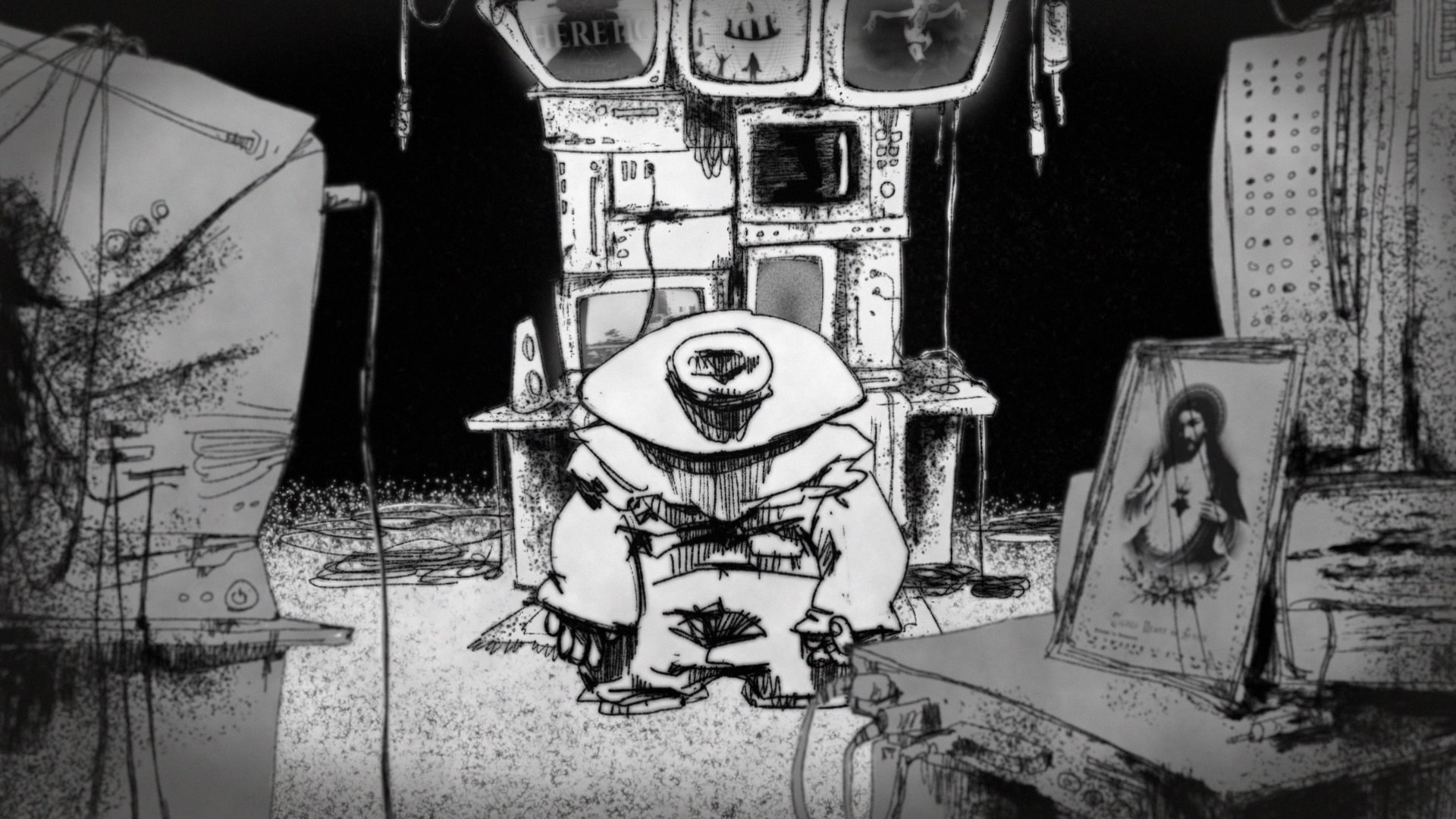 I’m a 2D character animator and aspiring filmmaker from Bray, Co. Wicklow. My work leans into humour and irreverence, while holding onto the rough, energetic feel of a napkin sketch – even when things get cleaned up. My graduate film 'Our Father' is an animated satire set in a dystopian Christian Ireland, where a washed-up street preacher tries to win back the souls drifting toward a late-night porno shop by preaching the Lord's 'good word' through erotic dance. Naturally, the Priest Police aren’t impressed. The film uses scratchy black-and-white animation and expressive, hand-drawn mark-making to amplify the chaos and absurdity of the story. As a student film, it was also an opportunity to test how far irreverence and religious commentary could stretch within the medium. The goal was to create something provocative and ridiculous, without relying on polish or permission.