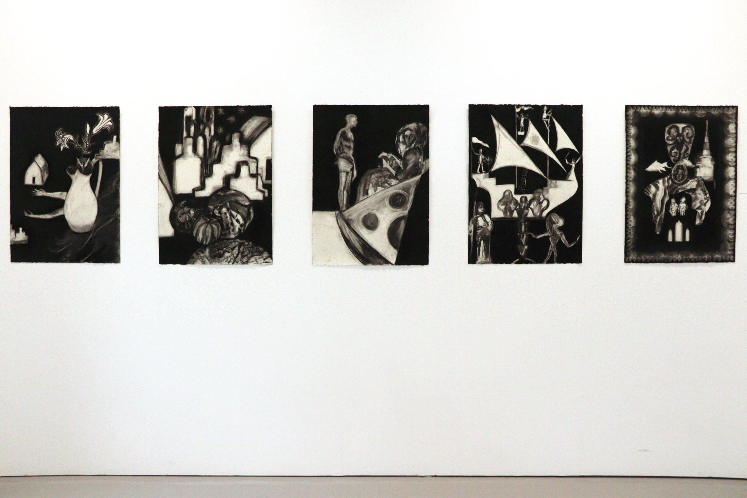 I am a painter and a sound artist. In this body of work I’ve focused on oils, charcoal, and voice. Working with a process of appropriation in which I combine objects from contemporary and historical artworks, and photographs, mine and others’, I have painted and drawn collage-like amalgamations. In some cases, pieces are linked by sharing imagery with one another. Like song, my sound art is comprised of layered recordings of my voice with an echo-like trance delay added. Themes of religion and spirituality emerge in my artwork, accompanied by other interests I hold such as literature, nature and fantasy. A principle I aim for in my work is beauty; I think of it as a profound tool which can be applied skilfully to create a better world. My inspirations include Sofonisba Anguissola’s timeless realism, Michelangelo’s deeply compassionate figuration, Firelei Báez’s exquisite colours and textures and Wolfgang Laib’s grounded peacefulness. Each artist’s work resonates with me and keeps me focused on the kind of work I would like to create. In this body of work, I would like to invite people into a whimsical, dreamlike space in which they have an opportunity to explore their own beliefs and interests.