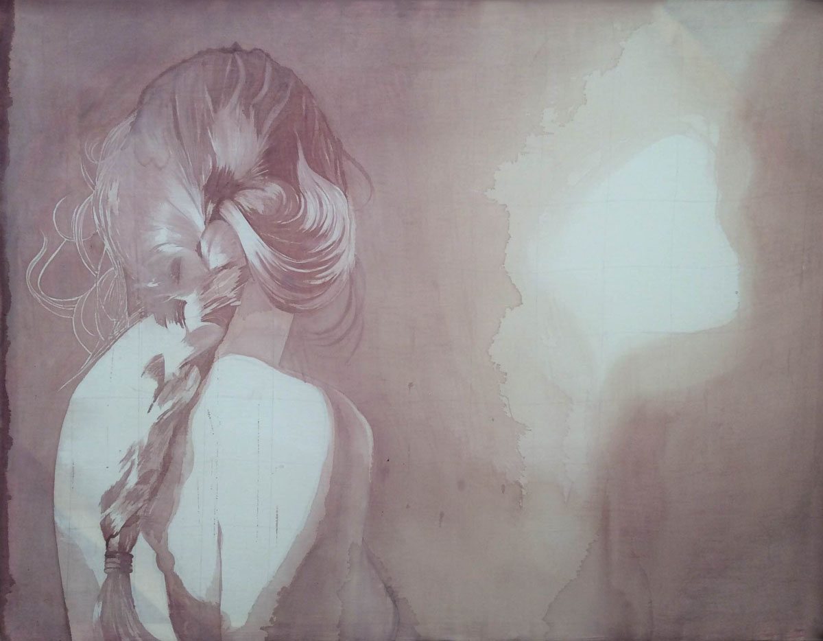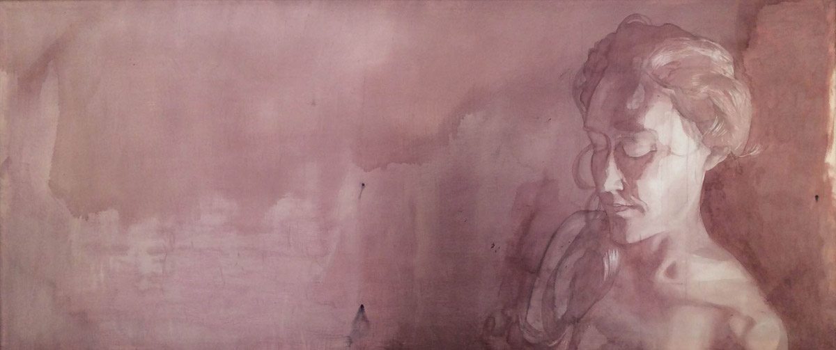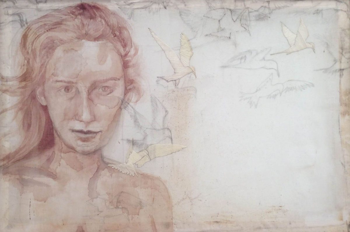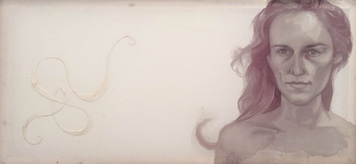 This series of self-portrait paintings emerged out of my love of portraiture and natural materials. As I developed a relationship with the landscape on the west coast of Ireland, I respectfully collected elements that I incorporated into my paintings. Consequently, an intimate connection with the earth found its way into an exploration of my inner self as i made these pieces.
