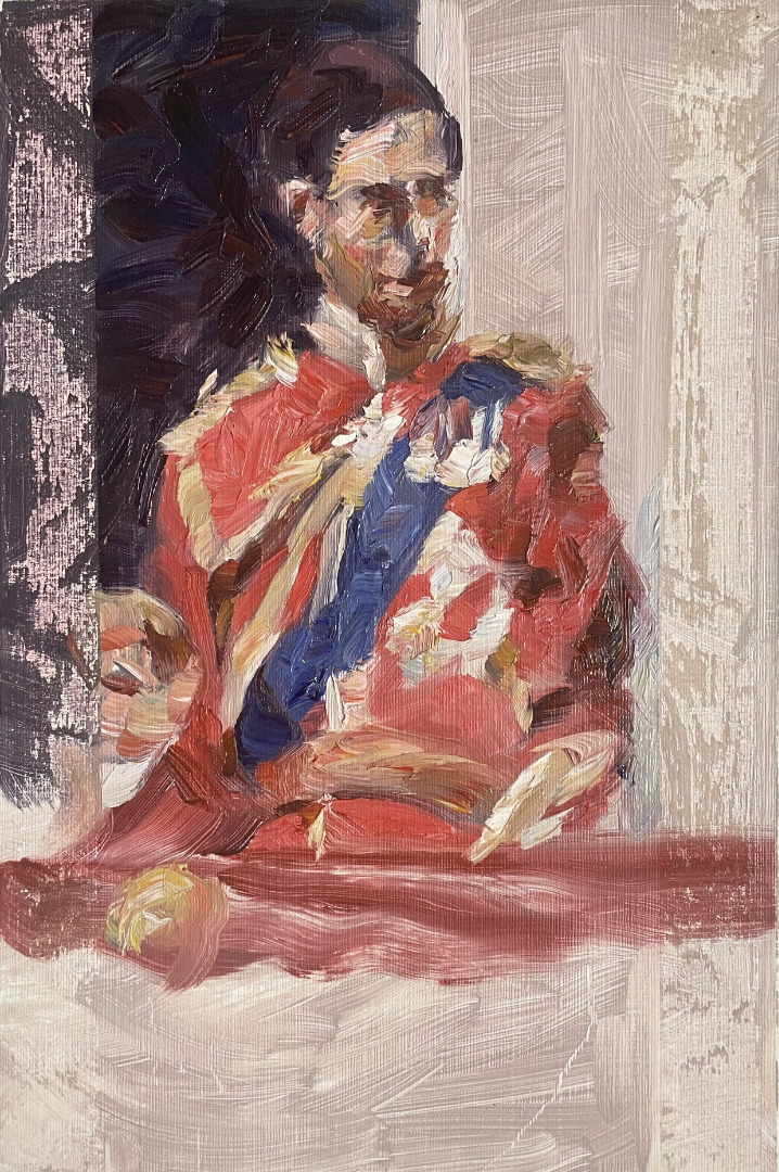 My painting practice aims to render figures of autocratic power through the visual language of beauty. The subjects which I chose to portray in my work are split between living, or historical draconic leaders and fictional supervillains. My array of characters share a consistent display of tyranny, serving as transparent apologues of evil. The central drive of my practice lies in evoking a problematised dialogue of the offensive, portrayed as beautiful and intimate.