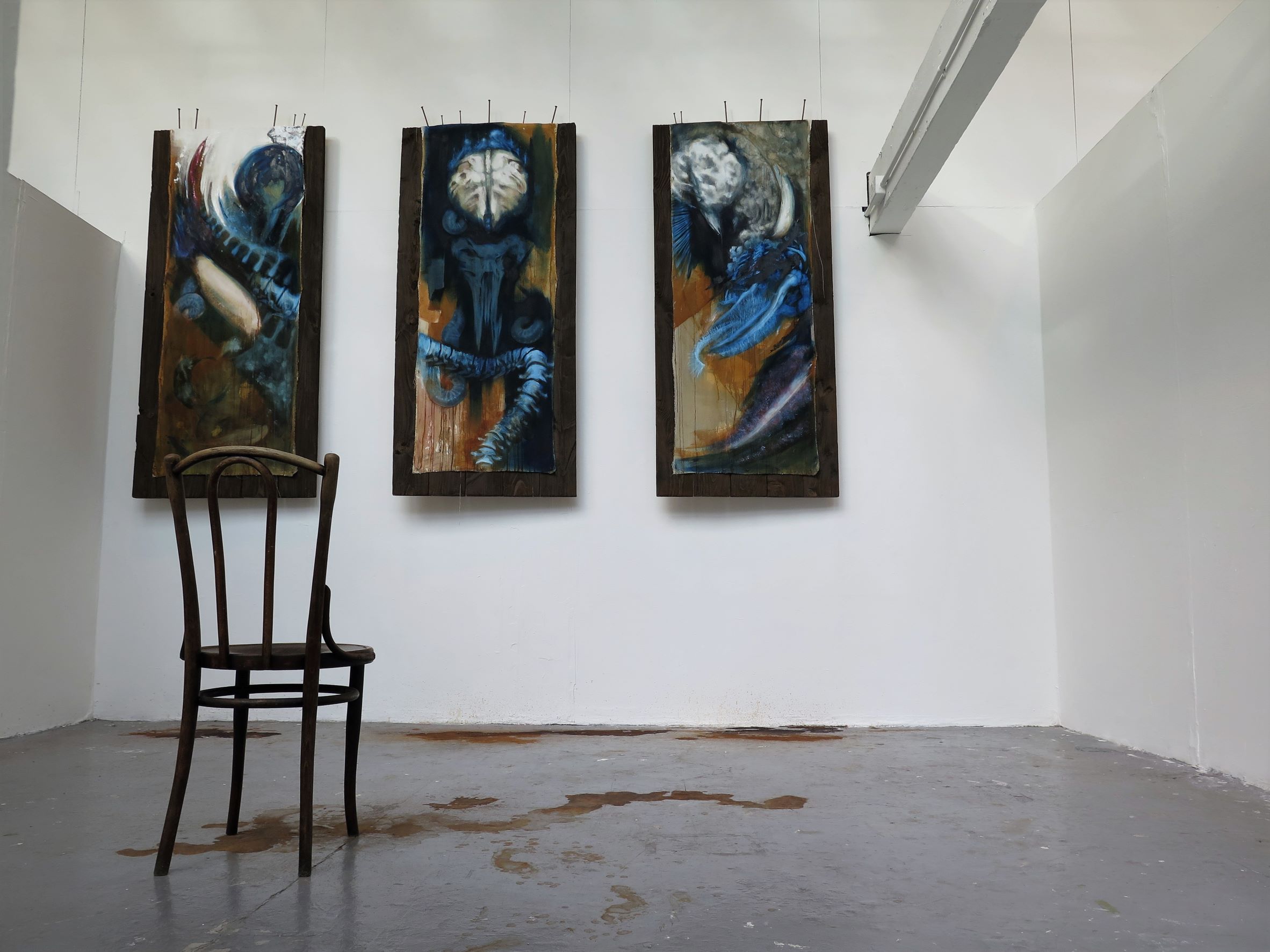 Growing up, coming from an underprivileged background, I became interested in all that was seemingly out of my reach. Fascinated by streams of education that were atypical to my standing, I educated myself, developing a strong relationship to philosophy and a better understanding of the human condition. This manifests itself in a practice that is grounded in honest reflection, and from that reflection, attempts to transcend the often unseen barriers of our corporeal existence, internalized fears and traumas, constantly reaching beyond itself while never attempting to depict something outside of my own experience. This leads the paintings to embody the conflict I find in my desire to accurately picture the vessel through which I experience the world, the male figure, and my need for honest expression. As a young Irish artist, I am aware of my place in an Ireland post Catholicism. My work tends to look to religion and faith, in hopes of tracing something sacred, the something unknown.