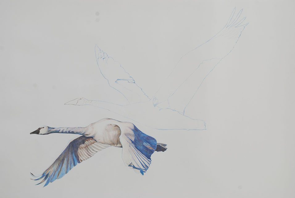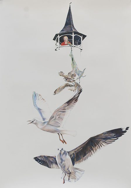 My work focuses on therianthropy, the mythological ability of human beings to metamorphose into other animals by means of shapeshifting. Throughout the history of folktales states of vulnerability and protection are often emphasized. This is also explored in my work as reflected in an imagined narrative sequence. The medium of coloured pencils are elevated to the status of an artwork.