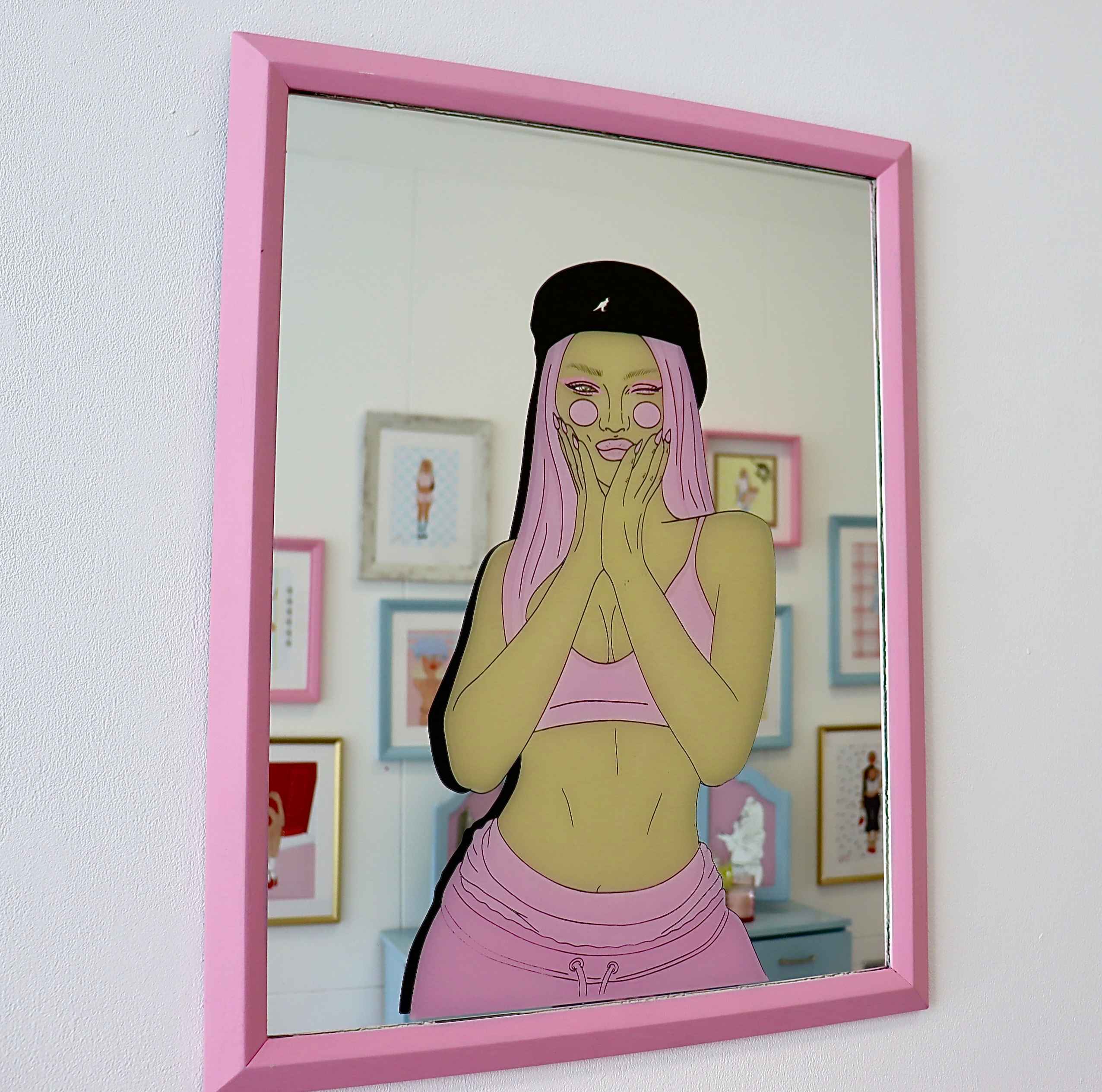 “You painted a naked woman because you enjoyed looking at her, put a mirror in her hand and you called the painting ‘Vanity,’ thus morally condemning the woman whose nakedness you had depicted for your own pleasure.” — John Berger. This quote captures the contradiction that lies at the heart of my work. It speaks to the long history of how women have been both objectified and judged for their appearance, especially when they acknowledge or take ownership of it. The moment a woman looks at herself—or is seen looking—she risks being labelled as vain. Her beauty becomes diminished by the suggestion that she is aware of it. At the heart of my practice is the concept of perception. I’ve always loved the way viewers engage with a piece—how they see it, interpret it, and bring their own experiences into its meaning. This dialogue between artwork and observer is, to me, one of the most beautiful elements of art: two people can look at the same piece and come away with entirely different understandings, shaped by their background, emotions, and creative intuition. While my work carries its own meaning, I deeply value the interpretations others bring to it. This is where mirrors become essential—not just as materials, but as conceptual tools. They allow the viewer to physically insert themselves into the artwork, blurring the line between subject and object. Each person sees something slightly different, not only in their reflection but in the meaning they extract. It becomes an interactive, evolving piece—never to be seen the same twice. It belongs to each viewer in a unique way. This project also speaks to the societal expectations placed on women to meet unrealistic beauty ideals while being shamed for engaging too closely with them. Beauty is encouraged, but vanity is punished—particularly when a woman appears aware of her own image. As Berger’s quote reveals, the mirror becomes a tool of moral judgment when placed in the hands of a woman. But in my work, I aim to reclaim it. I use mirrors not to condemn, but to empower—to allow space for reflection that is personal, complex, and unapologetically owned by the viewer themselves.