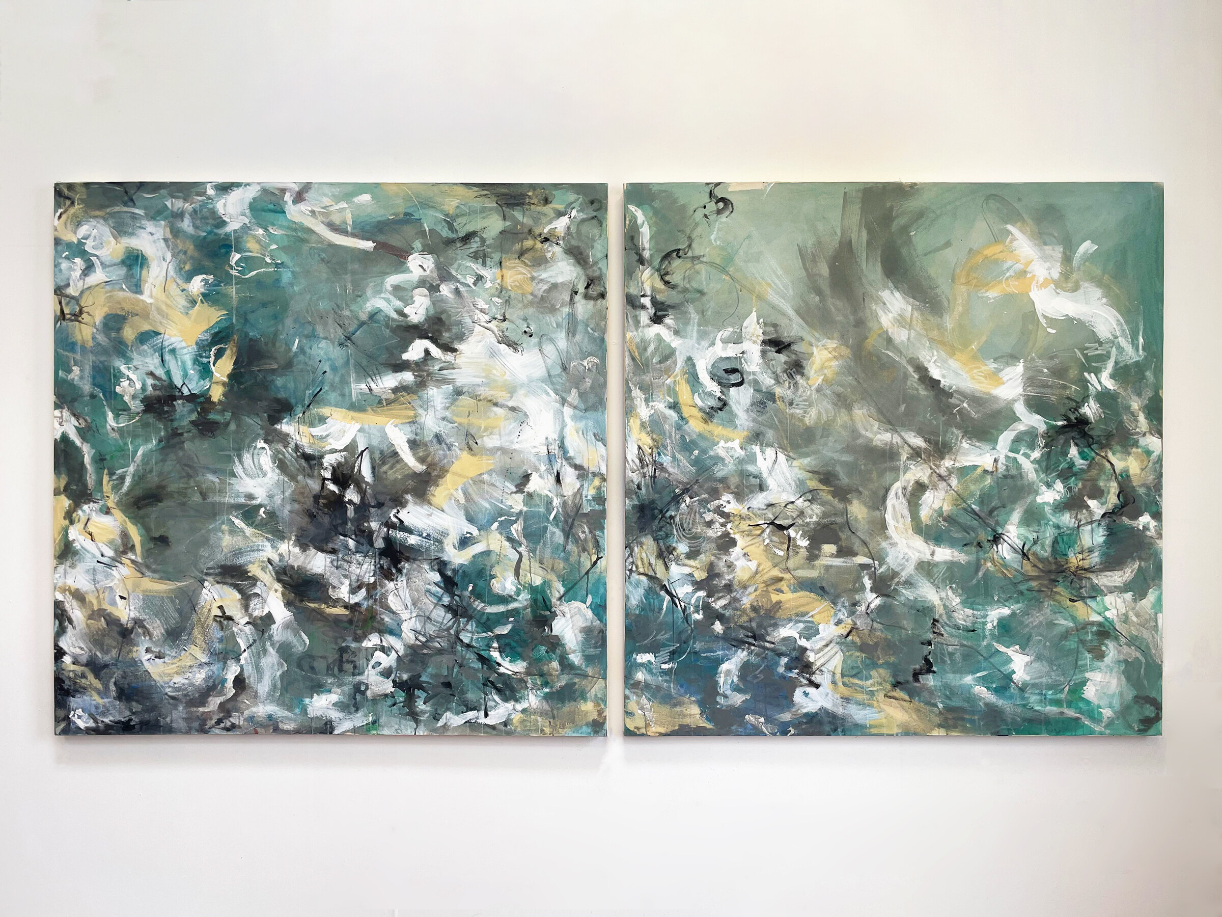 I am an abstract artist whose work is expressive and influenced by my daily experiences. I'm drawn to abstraction as it allows me to focus on the experience of creating rather than the final outcome. My work is an intuitive and spontaneous response to my immediate environment and things in close proximity to me. I also delve into personal memories and feelings as I make my work.My work is process-based. The experience of creating is just as important as the final outcome. It can’t feel stiff or still. It’s about movement and gesture, mark-making, and allowing that energy to come through. I create various marks using my body to express myself. Different motions of the body, speed, and movement can create different marks. Working in layers allows me to step back from the canvas and see it. This is where an element of control comes into my work, it’s not purely chance.Being able to evoke a feeling or an emotion from a viewer is something that intrigues me, the fact that everyone responds differently. I like having an intimate connection to my work, ie. emotion or memory. This is particularly important when titling my work - that personal connection between the painting and I.