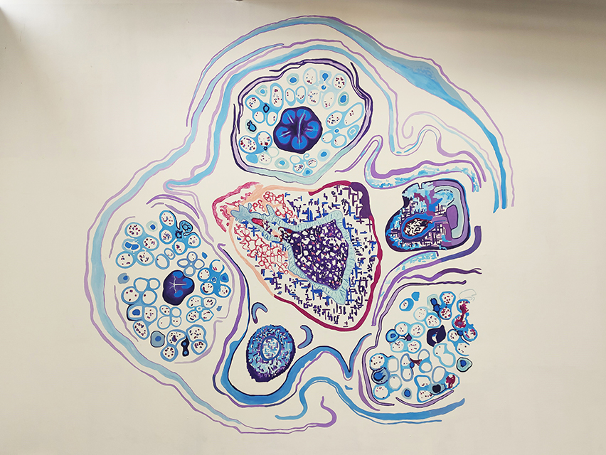 My work is mainly influenced by the natural environment, exploring the similarities between natural elements and the human body. Sometimes I study the microcosm through a stereoscope, while at other times I try to get closer to nature through various practices that activate my senses. In this way, I get a better understanding of my place in the environment in which I live. Through my artistic practice, I experiment with different materials and techniques by combining natural, recycled and non-toxic materials to reduce the carbon footprint I leave as an artist.Another aspect that plays a significant role in my work is the process as I am searching for non-toxic materials to avoid the synthetic ones. For example, for the preparation of a painting surface, I use a mixture of cornstarch, baking soda, PVA glue and water instead of Gesso. Small practices like this might not be visible in the final work; however, they are crucial for the meaning of my work. The final work is often an installation composed of mixed media objects and drawings in the space. My desire is to create a place for the viewer to explore, connect, imagine and create.