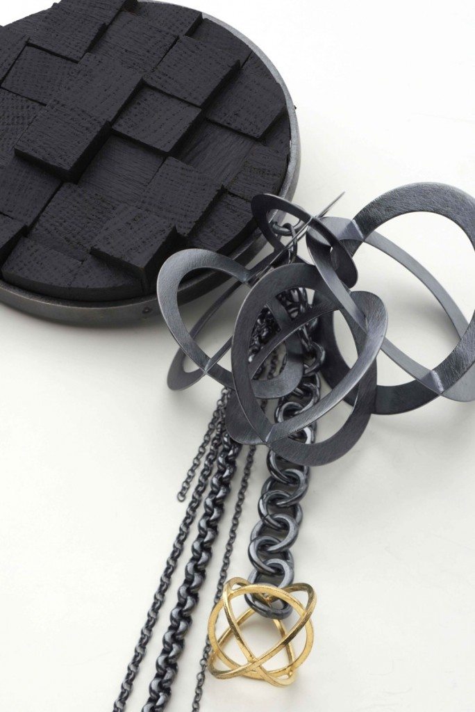 The jeweller, Seliena Coyle, has been announced the winner of the 2015 Golden Fleece Award. The annual award is administered by an independent trust, established in 2000 in accordance with the wishes of Lillias Mitchell, with submissions reviewed by a panel of advisors. Coyle’s most recent work, intended to construct an Irish aesthetic ‘without sentiment or cliché’, uses bog oak with other materials. She uses new technologies such as 3D printing in conjunction with traditional techniques. Coyle will use the award to research and develop a new body of work and to attend the 2015 SNAG (Society of North American Goldsmiths) conference in Boston. Merit prizes were awarded to the painter David Eager Maher and to the ceramist Kate O’Kelly who works with slip cast and mould making. She plans to use the award to improve her studio facilities. The sculptors Bridget O’Gorman and Rachel Joynt were commended. Joynt is best known for large public sculpture, often referencing the skeletal forms of sea creatures, upon which topic she quotes Richard Dawkins’ comment on the sand dollar as ‘a creature whose very strangeness helps us to see ourselves more clearly by showing us what we are not.