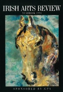 My Beautiful featured on the front cover of the 1993 Irish Arts Review Yearbook as part of a thirty-seven page Yeats family feature including extensive critiques by Hilary Pyle, Homan Potterton and Brian P Kennedy. Pyle vividly described the painting as a ‘large (102x153cm) and unforgettable depiction of human love and inspiration. Barely sketched on to the canvas, in two striking images Yeats tells the whole story of a poor Arab’s dilemma, forced to sell his steed, and then, moved by the loyalty of the special bond between them, refusing to part with the beast, accepting poverty and exile rather than betray the animal’s dumb devotion. The climax of the tale is depicted in the huge figure of the horse that surrounds the penitent suppliant looking down at him with the light of forgiveness in its eye.’