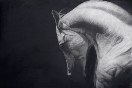 ‘Blood Horses’ is a collaboration at Market Place Theatre and Arts Centre between poet Moyra Donaldson and artist Paddy Lennon, with their shared interest in horses expressed through this exhibition with a limited edition publication. In both iterations, word and image combine to evoke the history of our human relationship with these creatures, and the part horses play in the lives of those who work with them. Image: Paddy Lennon